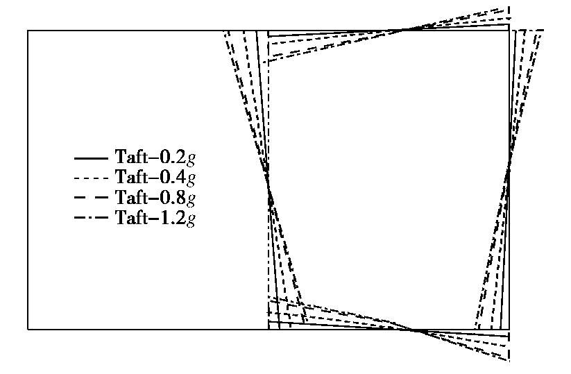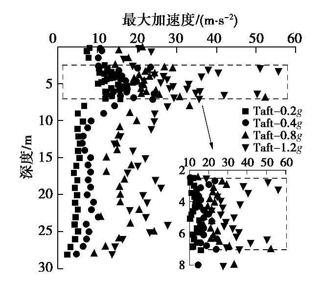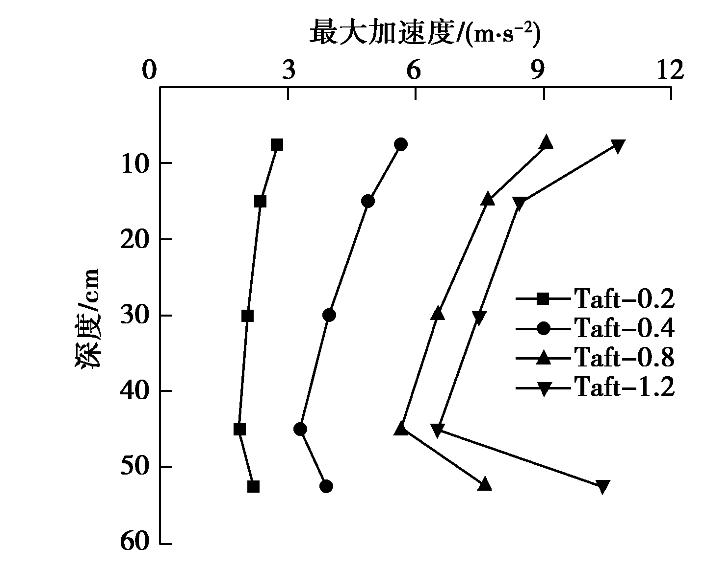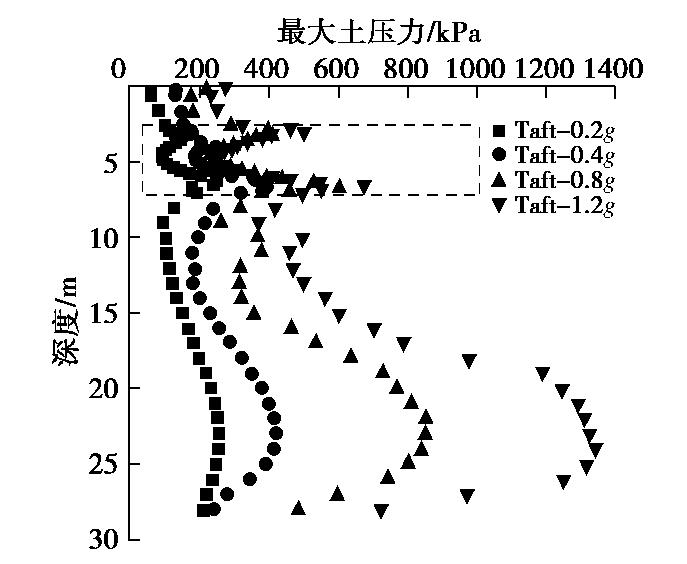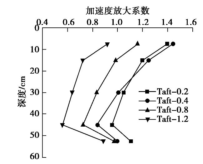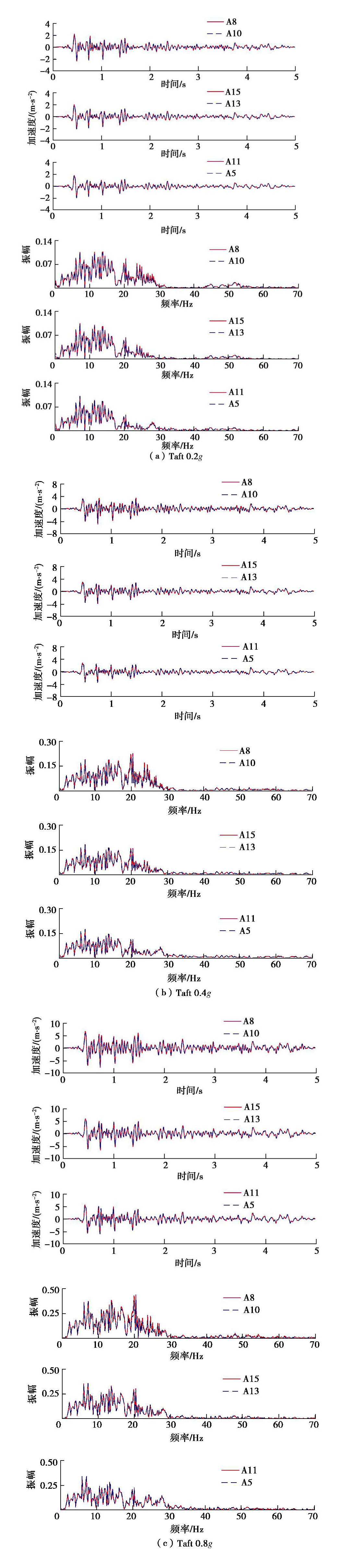 g, respectively to consider the effect of various peak ground accelerations (PGAs), are chosen as the input seismic ones. It is concluded that the maximum dynamic earth pressure has a distribution of reverse "W", and the earth pressure field changes at the end of earthquake. On the whole, the maximum acceleration response, with the amplification from 0.5 to 1.5, increases with an increasing input PGA and decreases with depth. According to the time histories of acceleration and the Fourier spectra, the structures and the surrounding soils basically have consistent acceleration response at the same depth, and the amplitude of the soils is greater than that of the structures under the frequency from 15 to 30 Hz. During the earthquake, there is a larger response of bending moment at corners of the structures, which increases with the input PGAs. At the same time, numerical simulations are carried out with ABAQUS to compare with the results obtained from shaking table tests, which suggests that the results obtained from shaking table tests are highly reliable.