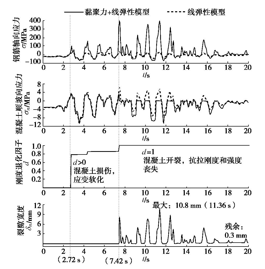 摘要: 准确定位面板薄弱区域、定量评价面板破坏程度对面板坝抗震安全评价至关重要。联合非完全点对点界面和四分树网格生成技术,实现了面板坝面板与垫层接触作用的两级跨尺度精细化建模;引入混凝土黏聚力模型并联合筑坝材料广义塑性模型、状态相关的弹塑性接触面模型考虑材料强非线性和破坏过程,建立了强震作用下面板动力弹塑性跨尺度开裂演化分析方法,并研发了显式地震波动分析框架下的SBFEM-FEM耦合计算软件。以200 m级面板坝为例进行了面板动力破坏数值分析,并分别考虑了面板配筋率、竖向地震和坝前水深的影响。结果表明:十分直观地再现面板坝防渗面板的动力开裂演化过程,有助于定位面板局部薄弱区域、定量评价面板破坏程度以及评估抗震措施加固效果,为混凝土面板抗震优化设计和极限抗震能力评估提供技术支持。可拓展用于其它混凝土防渗结构破坏计算,且可容易地扩展至三维分析应用。Abstract: It is crucially important for seismic safety evaluation of high concrete faced rockfill dams (CFRDs) to accurately locate the weak area of the panel and to quantitatively assess the damage of the face slab. In this study, the cross-scale model for CFRD is established using the interface element with asymmetric nodes and Quadtree for refined simulation of slab and cushion interaction. The cohesive zone model for concrete, the generalized plastic model for rockfill and the state-dependent elasto-plastic interface model are combined and used to describe the strong nonlinearity and failure process. On the above basis, the cross-scale crack evolution analysis method under strong earthquake is established and the coupled SBFEM-FEM analysis software is developed in the explicit earthquake wave motion input method frame. The dynamic failure analyses of slabs are performed for a 200-m-high CFRD considering the reinforcement ratio, vertical earthquake and water level of reservoir. The results indicate that the developed method can visually represent the seismic cracking evolution, conveniently locate weak areas of face slab, quantitatively determine the damage severity, and evaluate the aseismic measures. The research results may provide an effective method for the aseismic design and assessment of ultimate aseismic capacity of concrete slab. The proposed method can be extended to the failure analyses of other concrete structures and three-dimensional investigation and application easily.