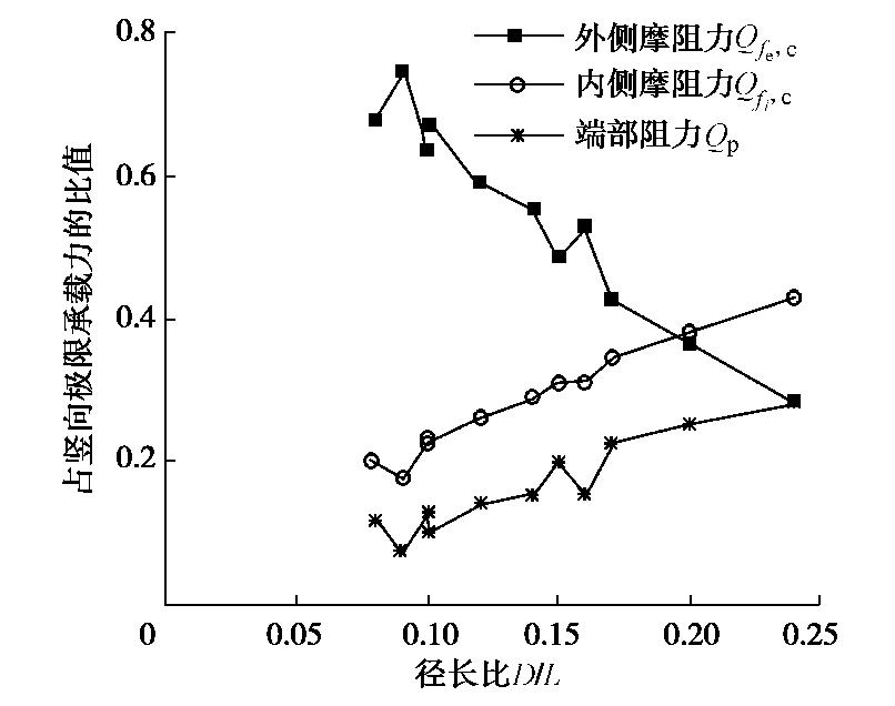 摘要: 近年来随着海上风电装机容量的不断增加,超大直径钢管桩基础的应用越来越广泛。桩径增加导致了在小直径钢管桩中出现的土塞闭塞效应减弱或完全消失,准确计算管桩的内侧摩阻力变得尤为重要。开展了砂土中超大直径钢管桩竖向承载特性的离心机模型试验,采用了双壁桩形式重点研究钢管桩内侧摩阻力的发挥规律,与数值模拟方法相结合系统研究了直径大于4 m,不同径长比钢管桩内侧摩阻力的发挥规律,将计算结果与现行的API规范方法进行了对比,并提出了内侧摩阻力的计算方法。研究揭示,超大直径钢管桩内侧摩阻力的发挥呈现桩端大并沿桩身迅速减小的三角形模式,当径长比小于0.2时,API规范方法计算得到的钢管桩内侧摩阻力偏大。Abstract: In recent years, with the increasing installed capacity of offshore wind power, the super-large-diameter steel pipe pile foundation has been widely applied. As the effect of soil plug weakens or disappears with the increase of the pile diameter, accurately calculating the inner frictional resistance of super-large-diameter steel pipe piles is especially important. In this study, the centrifugal model tests on the vertical bearing capacity of super-large-diameter steel pipe piles in sand are carried out using the double-wall pile form to study the inner frictional resistance. Then the action laws of the inner frictional resistance under different diameter-to-length ratios of steel pipe piles with diameter larger than 4 m are studied using the numerical simulation method. The calculated results are compared with API standard, and a new formula for calculating the inner frictional resistance is proposed. The research reveals that the inner frictional resistance of the super-large-diameter steel pipe pile shows a triangular pattern with the pile end greatly decreasing along the pile body. When the diameter-to-length ratio is less than 0.2, the inner frictional resistance of the steel pipe pile calculated by API standard is too large.