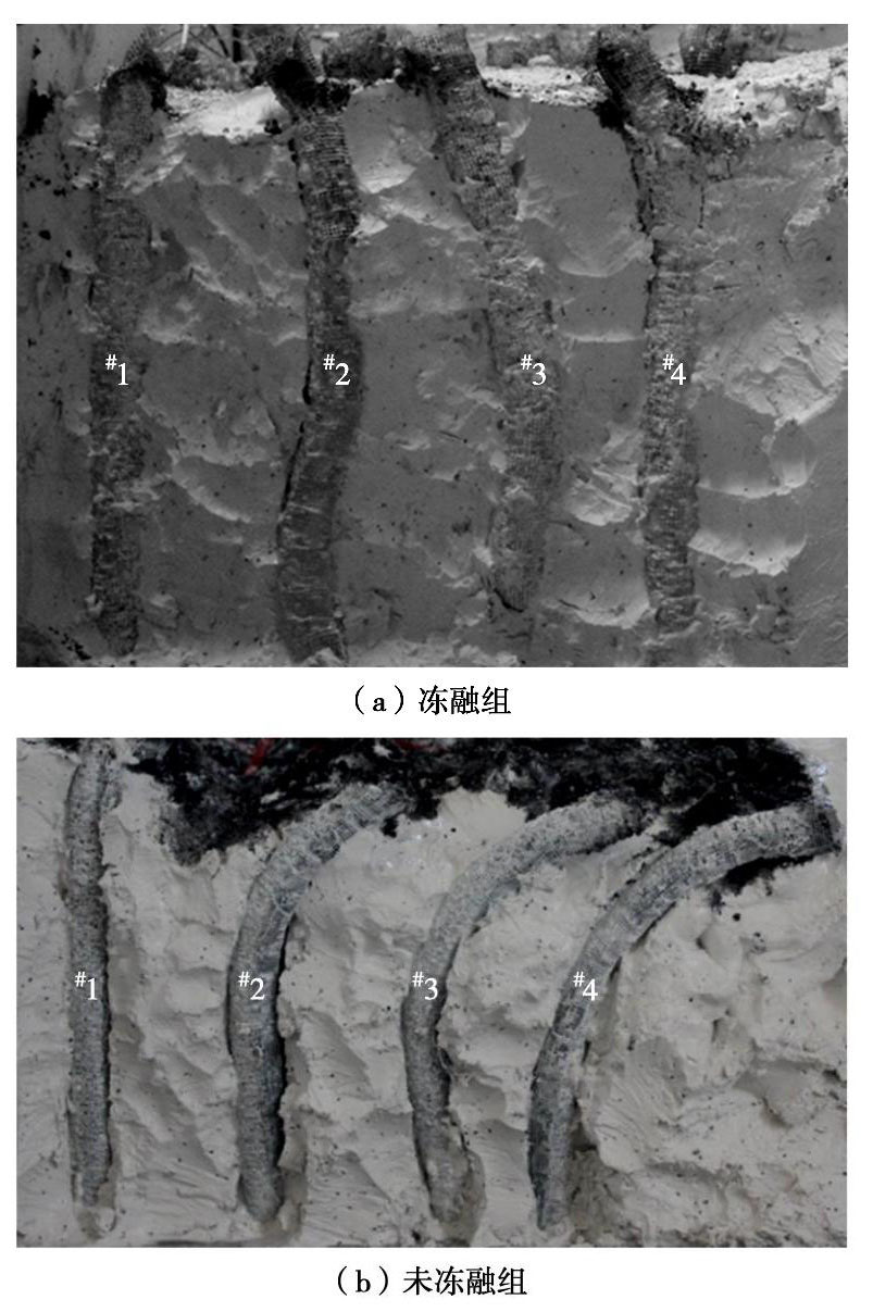 摘要: 制作了一套加筋碎石桩复合地基冷冻试验系统,开展了1组加筋碎石桩复合地基路堤冻融离心模型试验和1组未冻融的对比试验,以研究加筋碎石桩复合地基经历季节性冻土后填筑的路堤在冻融条件下的性状。研究结果表明:冻融条件下加筋碎石桩复合地基在地基土未融化前,其桩顶和桩间土沉降基本一致,而在地基土全部融化后,桩间土沉降显著增大;冻融条件下路堤边坡基本保持初始坡度,路堤下地基沉降比较均匀,而未冻融组路堤边坡明显变缓,路堤下地基不均匀沉降明显;在复合地基和桩体均处于冰冻状态时,其桩顶和桩间土应力一致,当桩体先于桩间土融化后,桩顶应力减小而桩间土应力增大,而当地基土开始全部融化后,桩间土应力快速下降而桩顶应力快速增大,冻融条件下复合地基沉降稳定时的桩土应力比是未冻融条件下桩土应力比的2/3左右;冻融条件下由于路堤加载过程中桩顶周围土体处于冰冻状态,限制了桩顶侧向位移,而冻土层以下土体推动下部桩体向外位移,使得靠近路堤边坡下的桩体向路堤内弯曲,但弯曲变形量较小,而未冻融条件下的桩体则向路堤外弯曲且弯曲变形量较大;加筋碎石桩适合用于季节性冻土区湿地软土地基处理,其复合地基经历季节性冻土后填筑的路堤整体性能较好。Abstract: A set of freezing test system for composite foundation with geosynthetic-encased stone columns (GESCs) is developed. The centrifugal model tests are conducted on an embankment on composite foundation with GESCs under freeze-thaw condition, and the comparative tests under non-freezing condition are also conducted. The behavior of embankment built on composite foundation with GESCs subjected to seasonal freezing is studied under freeze-thaw condition. The results show that under freeze-thaw condition, the consistent settlement is found on the top of the columns and on the soil when the soil and the columns are in the frozen state, while that on the soil increases significantly after complete melting. The embankment slope remains the original slope angle and has relatively uniform settlement under freeze-thaw condition, while the significant decrease in slope angle and differential settlement are observed under non-freezing condition. When the soil and the columns are in the frozen state, the stresses on the top of the columns and on the soil between the columns are consistent. However, columns melt before the soil, the stress on the top of the columns decreases while that on the soil increases. After the soil melts completely, the stress on the soil decreases rapidly while that on the top of the columns increases rapidly. Under the freeze-thaw condition, the stress concentration ratio is relatively small, which is about 2/3 of that under non-freezing condition. Because the soil around the top of the columns is in a frozen state during the embankment loading, the lateral displacement of the top of the columns is restricted. However, the soil below the frozen soil layer pushes the lower part of the columns outward that makes the columns under the embankment slope bend inward, but small bending deformation is observed. Inversely, the columns bend outward under non-freezing condition, and the bending deformation is obvious. The GESCs are suitable for the soft soil foundation treatment of wetlands in the seasonal frozen soil areas, and the overall performance of embankment built on the composite foundation with GESCs subjected to seasonal freezing is satisfactory.