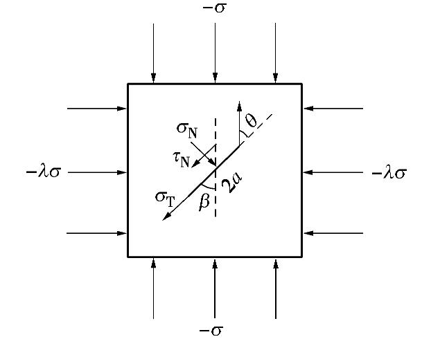 考虑裂缝几何特性和T应力的类岩石材料压剪张拉断裂准则