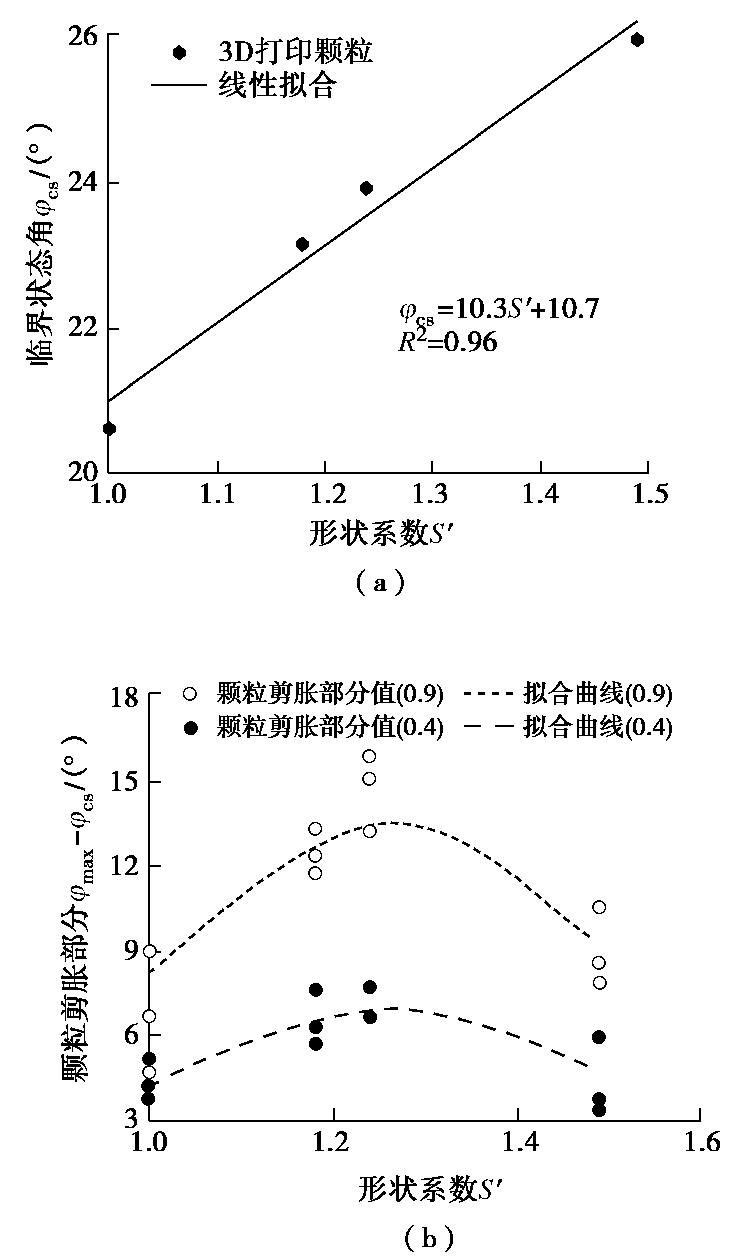 , but both the peak dilation angle and the peak internal friction angle are found to increase initially then decrease after reaching the peak, for the reason that irregularity promotes looser packing. This observation indicates that there exists an optimal particle shape factor of granular materials in nature. Finally, the relationship between