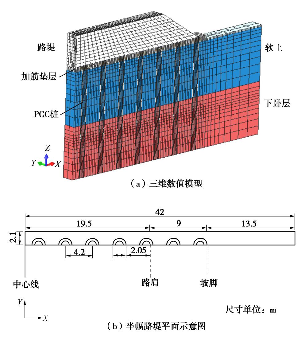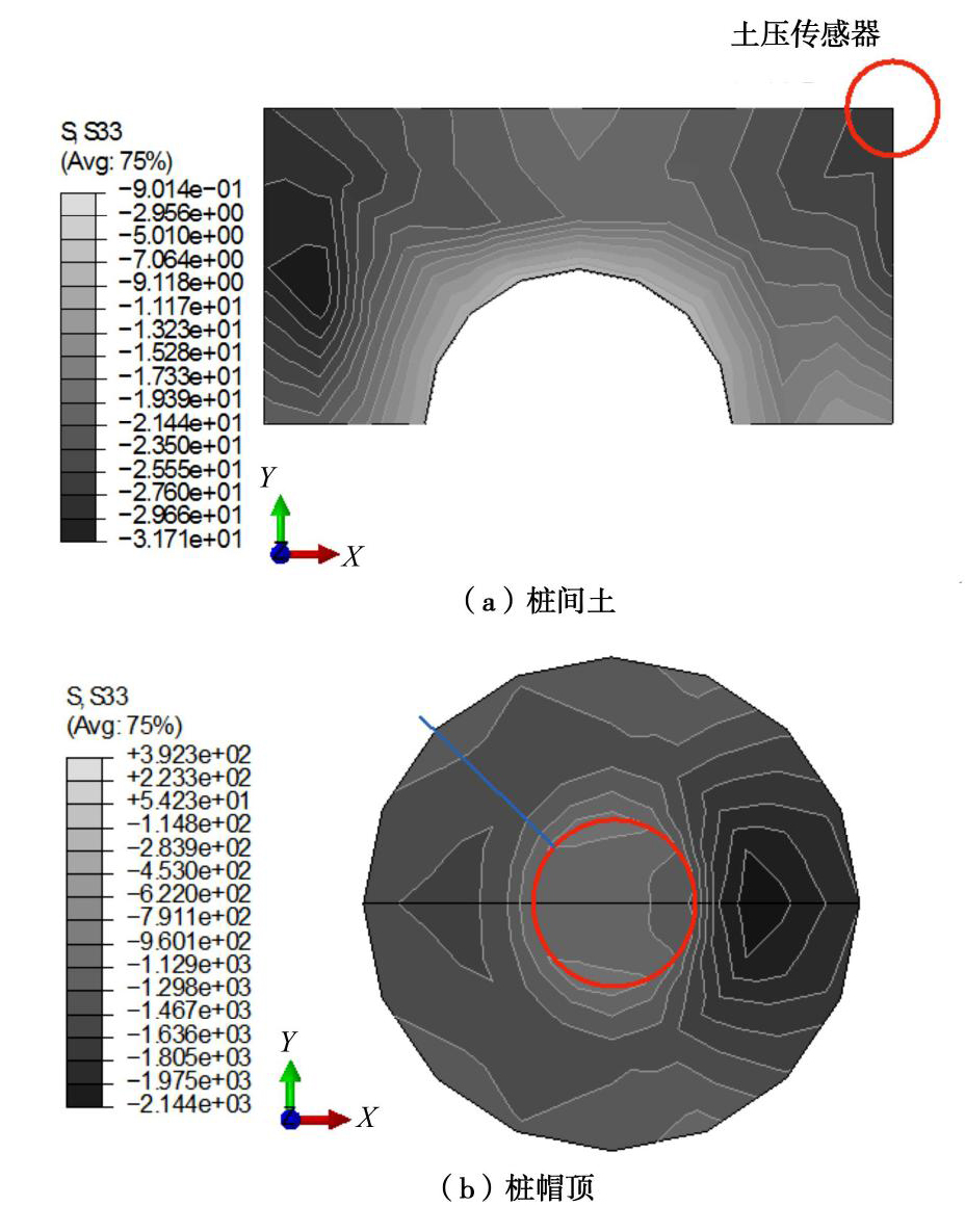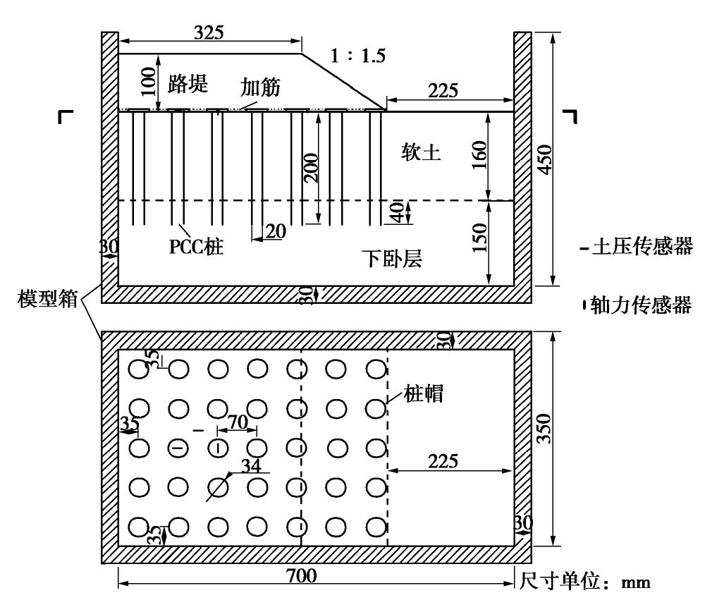 Based on the centrifugal modelling of PCC pile-supported and geosynthetic-reinforced embankments and the three-dimensional finite element numerical model, the test methods for vertical earth pressure and stress distribution rules of pile-soil in composite foundation are discussed. The results show that the calibration medium has an obvious influence on the coefficient of the earth pressure cells. In the range of single pile reinforced area, the distribution of vertical earth pressure at the top of pile cap and its surrounding soil is uneven. The centroid measuring points of the cap-top and the subsoil top are in the low-stress area and high-stress area, respectively. It is reasonable to calculate the average vertical earth pressure on the pile cap according to the measured force at the top of the pile. Statistics show that the average vertical stress of pile and soil cannot be characterized by the soil pressure obtained from the limited measuring points which are not fully representative.