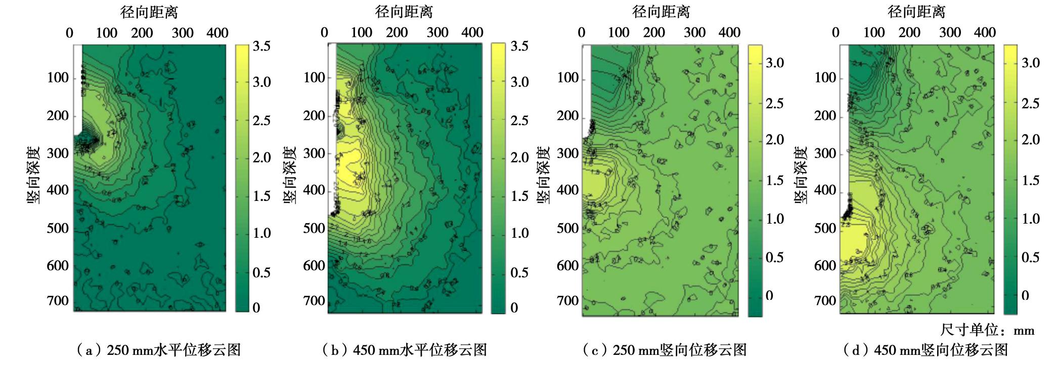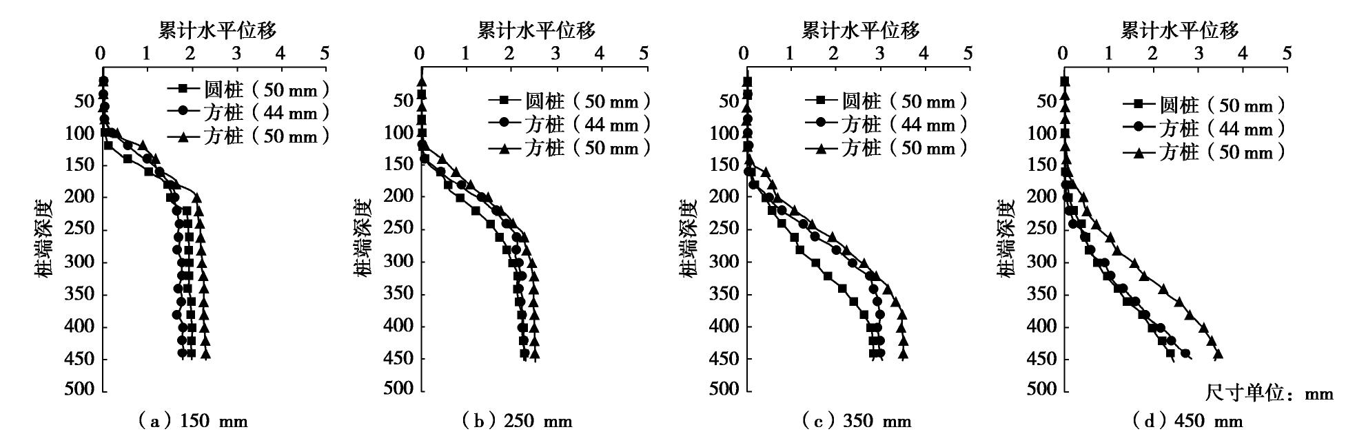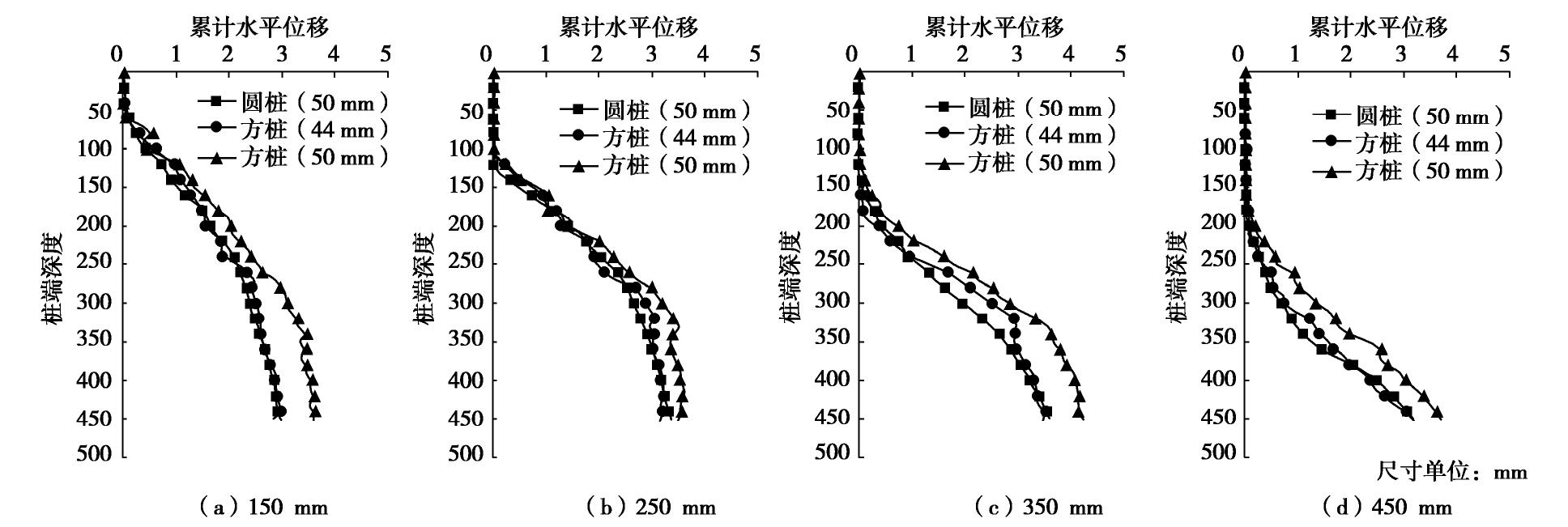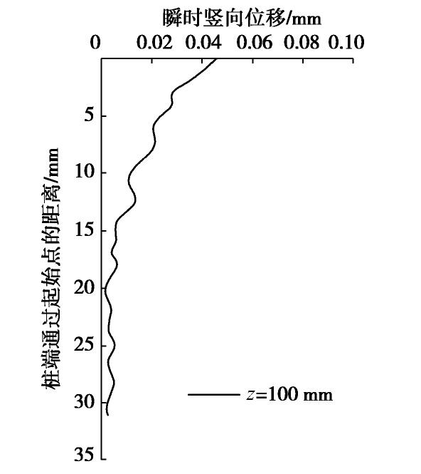 d50 and the soil in this layer moves downward when the pile passes through, the displacement of the layer gradually decreases.