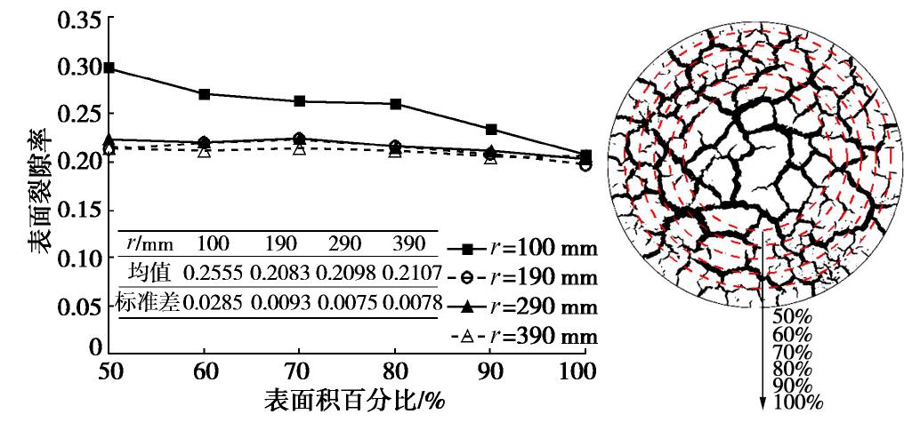 摘要: 湿干冻融耦合作用(WDFT)是导致寒区膨胀土地基发生劣化现象的重要因素,而膨胀土地基裂隙发育的方向对工程安全稳定存在长期影响。围绕膨胀土裂隙发育的方向性问题,采用自行设计的单向环境边界加载装置,开展了WDFT边界条件下表面裂隙发育特征的大尺寸试样单元试验,运用数字图像采集与处理方法得到了不同WDFT循环下的表面裂隙发育特征。试验结果表明,冻结过程中膨胀土内部液态水含量对表面裂隙的分布及形态产生重要影响,当临界饱和度较大时,冻结过程对裂隙起到促进作用,反之则为抑制作用;而在后期WDFT下的裂隙率逐渐趋于稳定。在此基础上,以裂隙图像灰度直方图为基础,通过梯度方向法对裂隙发育的局部方向性进行了统计,引入无量纲影响因子对裂隙角度进行了量化归纳,进一步探讨了膨胀土在下的裂隙演化规律。所采用的量化分析方法可为相关研究提供参考。Abstract: The wetting-drying and freeze-thaw(WDFT) coupling effect is an important factor leading to the deterioration of the expansive soil foundation in the cold regions, and the direction of fissure development in the expansive soil foundation has a profound impact on the long-term safety and stability. Focusing on the directionality of crack development in expansive soils, a unit test of the characteristics of surface crack development under WDFT coupling boundary conditions is carried out using the self-designed unidirectional environmental boundary loading device, and the digital image acquisition and processing methods are used to obtain characteristics of surface fissure development under WDFT coupling cycle. The test results show that the liquid water content in the expansive soil during freezing has an important effect on the distribution and morphology of surface cracks. When the critical saturation is large, the freezing process promotes the cracks, and vice versa. The fracture rate gradually stabilizes at later stage of WDFT. Based on the gray histogram of the fissure image, the local directionality of fissure development is calculated by the gradient direction method, and the dimensionless influence factor is introduced to quantify and summarize the fissure angle. The crack evolution laws of expansive soil are further investigated. The quantitative analysis method used can provide reference for related researches.
