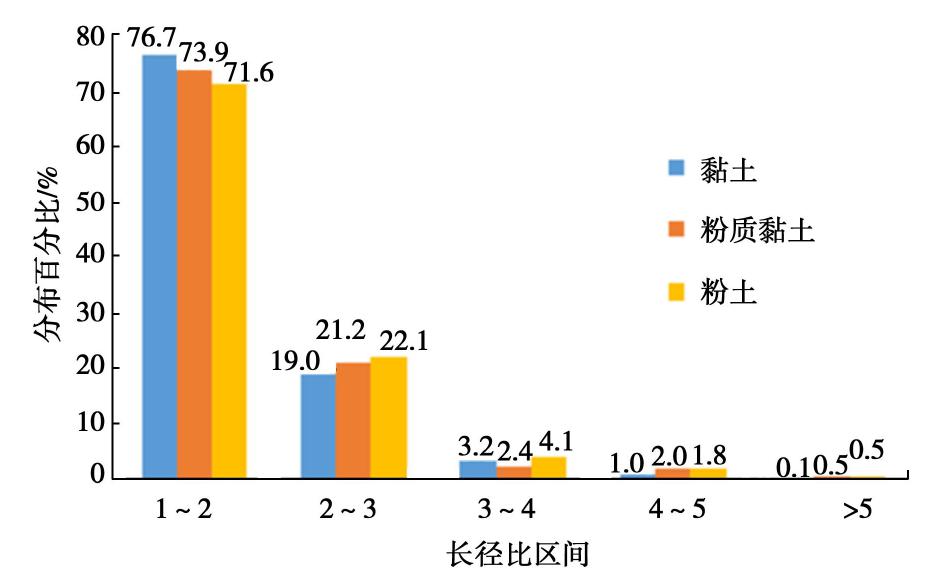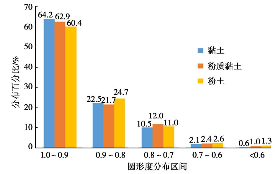 摘要: 土的宏观物理力学性质与其微观颗粒形状有着密切的关系,以天津港地区的典型黏性土为研究对象,采用数字图像技术对其颗粒形状特性进行了分析研究,得到以下结论:①土样的长径比主要集中到1~2,并且随着细颗粒含量的增加,土颗粒整体的长径比逐渐降低,细长形的颗粒逐渐减小,土颗粒越趋向于规则状;②土样的圆形度主要集中在0.9~1.0,并且颗粒越细,土样的整体圆形度越大,土颗粒的形状越趋向于圆形;③土样具有较好的粗糙度分形特性,并且颗粒越细,这种分形特性表现的越明显,其中黏土、粉质黏土、粉土的颗粒表面粗糙度分形维数分别为0.9590,0.9574,0.9654,这说明土颗粒越细,其表面起伏越小,表面越光滑。Abstract: The macro-physical and mechanical properties of clay are closely related to its micro-particle shape. The typical soft clay in Tianjin Port area of China is taken as the research object, and its particle shape characteristics are analyzed and studied by the digital image technology. The main conclusions are as follows: (1) The ratio of long to short diameter of soil samples is mainly concentrated between 1 and 2, and the ratio of soil particles gradually decreases with the increase of fine particle content. Moreover the slender particles gradually decrease, and the soil particles tend to be regular. (2) The roundness of soil samples mainly concentrates between 0.9~1.0, and the finer the particles, the larger the overall roundness of soil samples, the more rounded the shape of soil particles. (3) The fractal dimension of the surface roughness of clay, silty clay and silt is 0.9590, 0.9574 and 0.9654, respectively, which indicates that the finer the soil particles are, the smaller the surface fluctuation is and the smoother the surface is.
