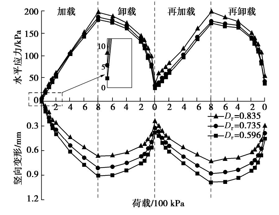 • 摘要: 松散土颗粒间存在摩擦、咬合作用,压实后会产生一定的残余应力。设计加工了一套包括土样制备和加载的压实土水平残余应力测试装置,开展了粉质黏土与砂土水平残余应力随含水率、压实密度变化规律的试验研究,比较了两类典型路基填料的水平残余应力特性;基于Mohr-Coulomb准则,提出了一种以土体抗剪能力特征分量cm,φf为核心参数的压实土水平残余应力估算方法,并对估算结果进行了误差分析。研究表明:压实粉质黏土试样,颗粒间摩擦锁固效应较强,水平残余应力随含水率升高而呈近似线性降低规律,随压实度提高表现出折线型加速增大趋势;采用振动压密方法制备的砂土试样,颗粒间接触力较小,但加卸静荷载后的水平残余应力增幅明显,并随含水率和相对密度提高均呈近似线性增加规律;压实粉质黏土的水平残余应力明显大于均匀级配砂土,由建立的压实土水平残余应力分析模型,获得的估算值与测试值吻合较好,粉质黏土试样的平均误差约为6.30%,砂土约为17.80%。