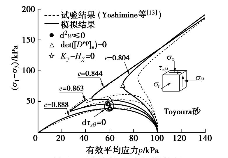 The stress-strain relations of saturated sand are anisotropic and state-dependent, thus the initiation of its static liquefaction relies on stress paths. While various criteria have been proposed to predict the triggering of static liquefaction, their accuracy is normally examined under triaxial stress paths. When subjected to complex stress paths that involve the rotation of the principal stress directions and different relative magnitudes of the intermediate principal stress, the accuracy of these criteria remains to be an open question. Here the capacity of three criteria is evaluated, including the second-order work, symmetric part of the elastoplastic stiffness matrix and instability modulus, for predicting the static liquefaction under complex stress paths, by employing a state-dependent, anisotropic constitutive model and comparing against the hollow cylindrical torsional shear tests on Toyoura sand. It is found that: (1) The instability condition derived from the elastoplastic stiffness matrix does not depend on the stress paths, thus being more general, and the predicted liquefaction initiation is earlier than or coincident with the actual instability point. (2) The instability modulus approach can predict the initiation of static liquefaction, however, the instability conditions vary across different loading paths. The instability line is obtained, through which the influences of factors like the intermediate principal stress and the principal stress directions on the peak mobilized friction angle before liquefaction are studied.