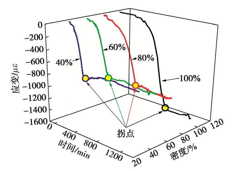 摘要: 将布拉格光纤光栅(Fiber Bragg Grating,简称FBG)传感器植入3D打印土体内部,开展3D打印不同阶段的土体应变变化特征研究。试验中主要考虑3个阶段,包括3D打印阶段、土体室内烘干阶段、单轴抗压试验阶段。试验中主要考虑改变土体的3D打印填充密度,分别为40%,60%,80%,100%。试验结果表明:増材制造技术打印的土体可根据FBG传感器测得的内部变形特征划分3个典型阶段,包括打印-横向膨胀变形阶段,土样干燥-变形收缩阶段,稳定的残余变形阶段。研究发现:①打印阶段中,土样的侧向变形与填充密度呈线性变化,且变形具有突变特征。100%填充密度土体应变增量是40%填充密度土体的4倍;②干燥阶段中,土样收缩变形呈现先非线性下降后伴随稳定阶段的现象,填充密度的提高导致收缩应变增大,伴随出现残余应变的时间发生滞后;③单轴抗压试验阶段,土体横向变形呈现急剧上升的现象,测得的横向变形与填充密度亦呈现线形关系。FBG传感器的结果显示,当填充密度从40%提高到100%时,土体的侧向破坏应变提高了1.1倍。Abstract: In this study, the Fiber Bragg Grating (FBG) sensors are successfully mounted into 3D printed soil samples to investigate the internal strain characteristics in different printing stages, which mainly consist of 3D printing stage, indoor drying stage, and uniaxial compression test stage. The systematic change in infill density including 40%, 60%, 80% and 100% is taken into account in the printing stage. The test results show that the soil printed by the additive manufacturing technology can be divided into three typical stages according to the internal deformation characteristics measured by the FBG sensors, including lateral expansion stage, soil sample drying and contraction stage, and stable residual deformation stage. It is found that: (1) During the printing stage, the lateral strain of soil samples increases, linearly proportional to the change in the infill density. The strain increment of the soil with infill density of 100% is 4 times that with infill density of 40%. (2) During the drying stage, the printed soil samples contract significantly along with a stable strain change phase. The increase of infill density of soil leads to substantial rise of shrinkage strain, and presence of residual strain is postponed when the infill density is high. (3) During the uniaxial compression test stage, the lateral deformation of soil shows a sudden rise, and the measured lateral deformation is linearly proportional to the change in the infill density. The results of the FBG sensors indicate that lateral failure strain of soil increases 1.1 times when the infill density increases from 40% to 100%.