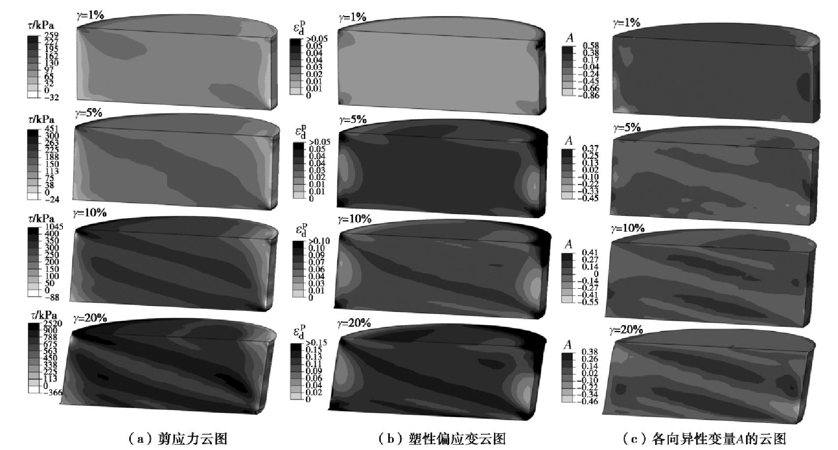 摘要: 在单剪条件下,由于侧边界上不存在互补的剪切应力会导致应力不均匀,使得室内单剪试验研究变得复杂。提出一个考虑砂土初始各向异性的单剪试验数值分析方法。主要是通过引入初始各向异性修正的临界状态本构模型,并将模型编入有限元大变形计算平台。利用三维有限元分析实际的GDS型单剪试验条件,以分析在剪切过程中试样的不均匀特征。此项研究可以提高对单剪试验过程中边界效应的理解和认识,并且提供一种分析试样的不均匀性的计算方法。Abstract: The absence of complementary shear stress on the side boundary of a specimen in the simple shear tests will cause stress inhomogeneity. An enhanced critical state-based constitutive model is proposed by incorporating the inherent anisotropy fabric, and also implemented into the finite element code for the numerical simulation. In addition, a three-dimensional finite element analysis with the same size as the GDS-type simple shear apparatus is performed to illustrate the inhomogeneous features of the specimen. Above all, this study can improve the understanding and knowledge of boundary effects for the simple shear tests, and provide a calculation method for analyzing the inhomogeneous ness of the specimen.