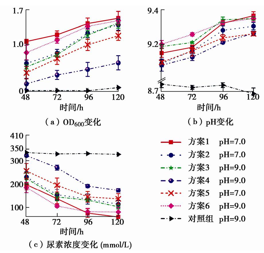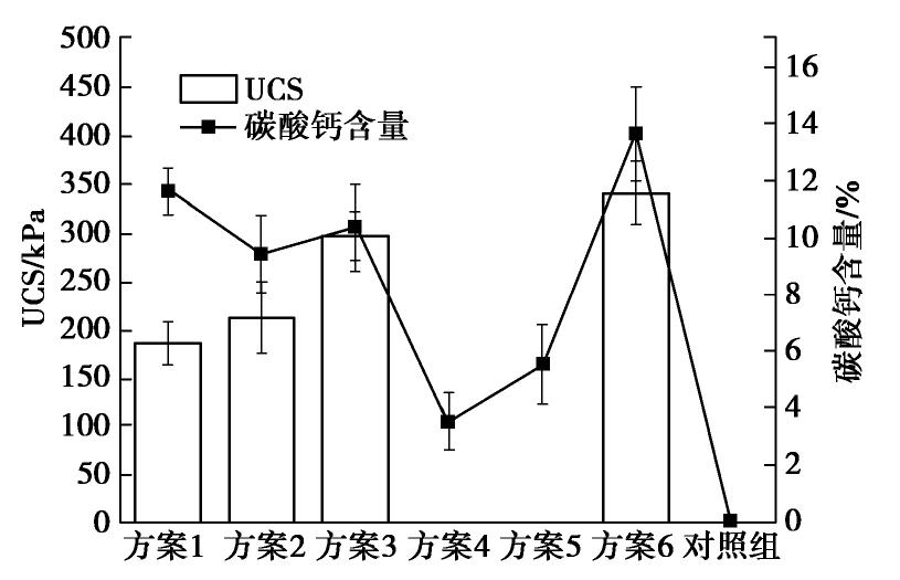 Six different targeted activation schemes for urea-producing microorganisms are designed for the biomineralization and reinforcement of calcareous sand. Through unconfined compression tests, calcium carbonate production measurements, SEM and XRD test analysis, the reinforcement effects of calcareous sand are evaluated, and the best targeted activation scheme is obtained. Finally, the changes of microbial community in the calcareous sand before and after activation are analyzed by high-throughput sequencing analysis results. The results show that: (1) the concentration of YE and NH