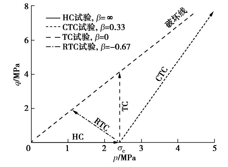 摘要: 钙质砂的剪胀特性受应力路径和颗粒破碎的共同影响。为了探讨钙质砂在不同应力路径下的剪胀特性,进行了一系列不同固结压力和应力路径组合的排水三轴压缩试验。结果表明:应力路径和颗粒破碎对钙质砂的剪胀特性有重要影响。不同应力路径下钙质砂的剪胀比与应力比的关系存在显著差异。相同应力比下的剪胀比,等围压试验的最大,等轴向应力试验的最小,等平均主应力试验的居中。峰值应力比对应的剪胀比随峰值应力比的增大而减小且为线性关系,随颗粒相对破碎率的增大而增大并近似呈幂函数关系,应力路径对这些关系的影响不大。忽略应变软化阶段的剪胀比与应力比相关的参数大致呈线性关系,其直线斜率与应力路径和固结压力相关。基于试验结果,提出了一种与应力路径和颗粒破碎相关的剪胀方程并进行了试验验证,显示出剪胀方程对不同类型的粒状土均具有较好的适应性。Abstract: The stress path and particle breakage have an impact on the dilatancy of calcareous sand. A series of drained triaxial compression tests with different stress paths and confining pressures are carried out to investigate the dilatancy of calcareous sand. The results show that the stress path and particle breakage have important effects on the dilatancy of calcareous sand. The relationship between the dilatancy ratio and the stress ratio of calcareous sand under different stress paths is significantly different. Under the same stress ratio, the dilatancy ratio in the constant confining pressure tests is the maximum, and that in the constant axial stress tests is the minimum. The dilatancy ratio in the constant average principal stress tests is between above two tests. The dilatancy ratio corresponding to the peak stress ratio decreases with an increase of the peak stress ratio, which follows a linear relationship, and increases with an increase of the relative breakage index, which is approximated by a power function. These relationships are not affected by the stress paths. The relation between the dilatancy ratio and the parameters related to stress ratio is linear under the condition of ignoring strain softening stage, and its slope is related to the stress path and the consolidation pressure. Based on the test results, a dilatancy equation related to the stress path and particle breakage is proposed and verified. It is shown that the dilatancy equation has better adaptability to different types of granular soils.