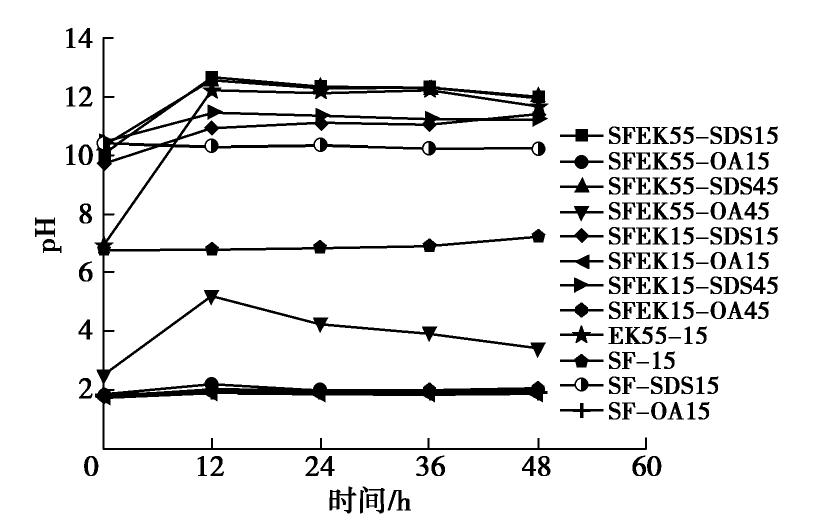 摘要: 自行设计了温控电动联合淋洗试验装置,开展了铬污染淤泥质黏土室内土柱试验,分析了电流、电解质溶液pH的变化以及淋洗液种类、外加电压、温度对铬去除效果的影响。结果表明:电动联合淋洗法可以有效去除土体中的重金属铬,当电压较小为15 V,淋洗液为十二烷基苯磺酸钠(SDS)和草酸(OA)时,Cr(Ⅵ)的去除率分别高达95.86%和95.91%,Cr(总)的去除率分别为81.31%和78.08%。升高温度有助于草酸与铬的络合作用及铬的迁移,当温度升高至45℃时,Cr(Ⅵ)与Cr(总)的去除率可高达99.65%与82.50%;而当淋洗液为SDS时,升高温度使Cr(总)的去除率降低了10.99%。电压提高到55V对铬迁移的促进作用有限,淋洗剂为SDS和草酸时,Cr(VI)的去除率分别提高2.58%和3.05%,Cr(总)的去除率分别提高9.29%和3.78%,从节能角度考虑可采用较低的电压。电动联合淋洗法可有效去除污染土中水溶态及弱酸提取态的铬,降低污染土的毒性,并使土粒之间的孔隙变小,土粒结构更为紧密。Abstract: A series of column tests on chromium-contaminated mucky clay are conducted in lab using the self-designed electrokinetic soil flushing apparatus considering temperature. The changes of the current and electrolyte solution pH, and the effects of the type of leaching agent, applied voltage and temperature on the removal behavior of chromium are analyzed. The results show that the chromium in soil can be removed effectively by the electrokinetic soil flushing method. When the voltage is 15 V, using sodium dodecylbenzene sulfonate (SDS) and oxalic acid (OA) as leaching agent, the removal ratio of Cr(VI) is 95.86% and 95.91% respectively, and the removal ratio of Cr (total) is 81.31% and 78.08% respectively. Raising temperature to 45℃ can promote complexation of oxalic acid and chromium leading to the migration of chromium, the removal ratio of Cr (VI) and Cr (total) reaches 99.65% and 82.50% respectively. However, raising temperature results in the removal ratio of Cr(total) by 10.99% when using SDS as leaching agent. Raising the voltage to 55 V, the chromium migration has slight effect on its migration. When using SDS and OA as leaching agents, the removal ratio of Cr(VI) can increase by 2.58% and 3.05% respectively, and that of Cr (total) can increase by 9.29% and 3.78% respectively. Lower voltage can be selected for the sake of saving energy. The water-soluble and weak acid-extracted chromium can be efficiently removed by the electrokinetic soil flushing method and the toxicity of contaminated soil can be reduced. After remediation, the soil structure is changed, and the pores between soil particles become smaller and the soil is more compacted.