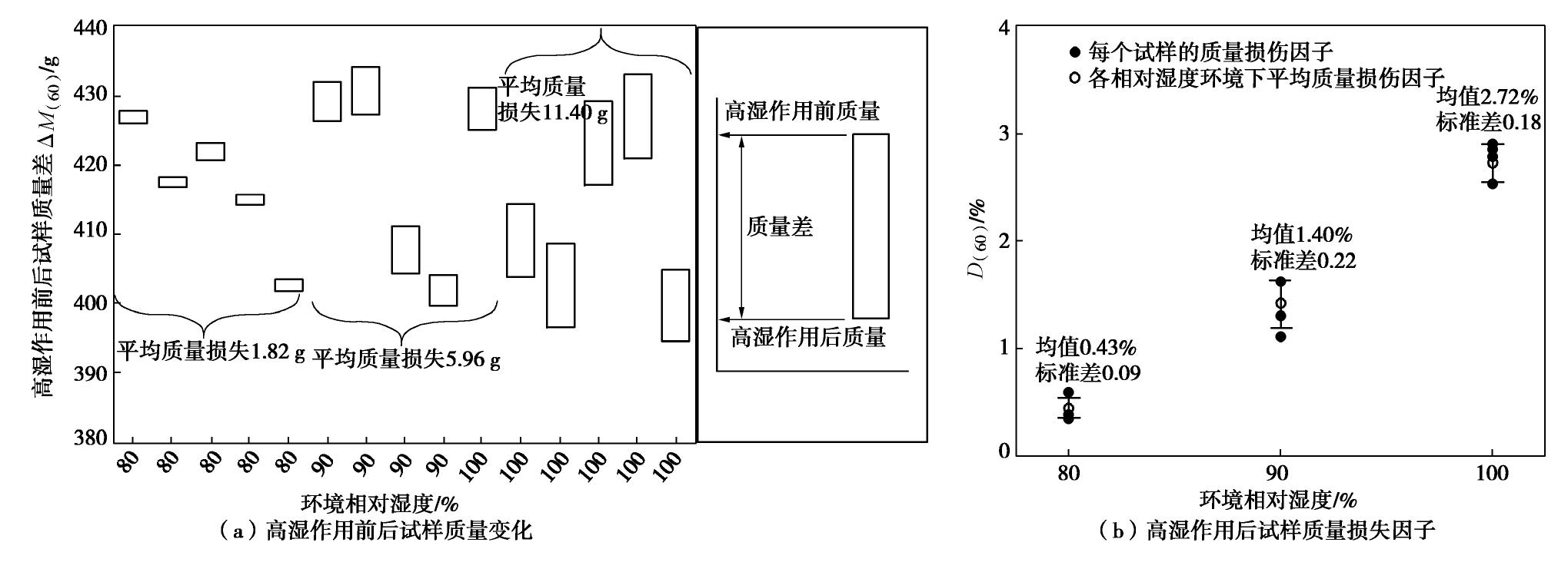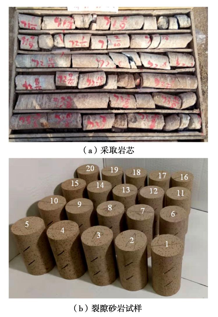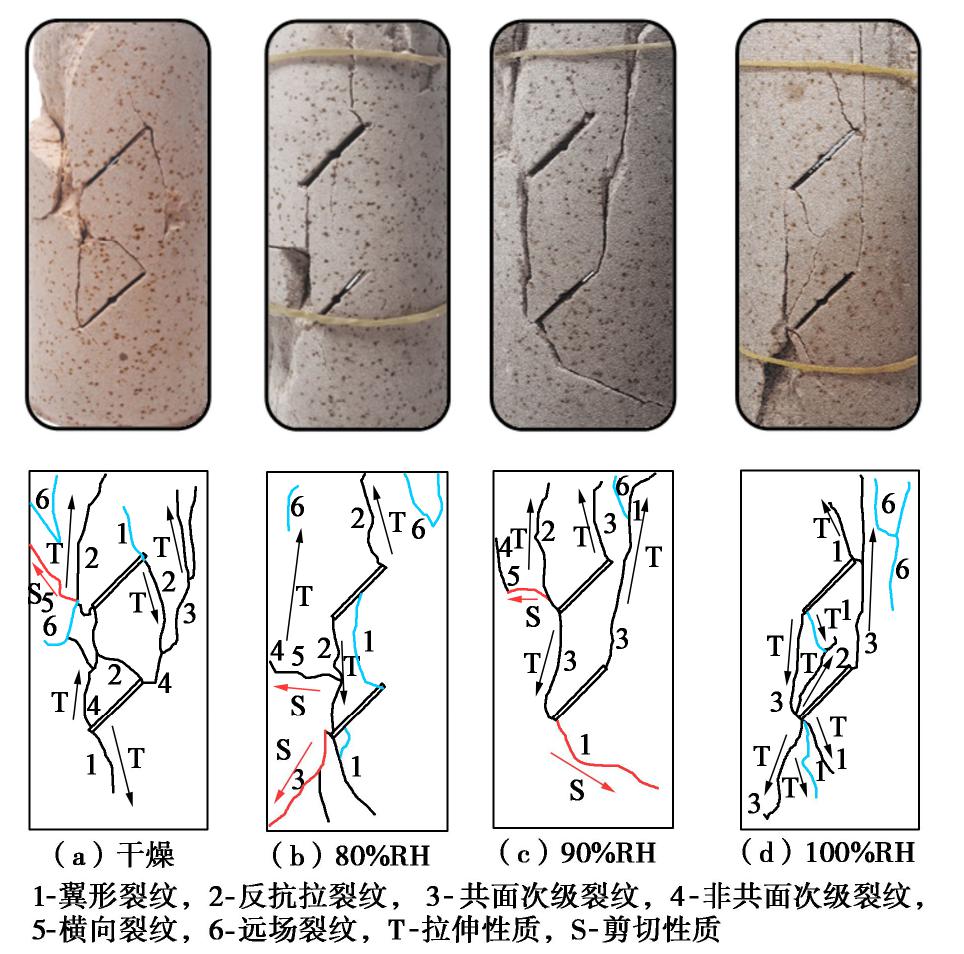 摘要: 深部裂隙矿柱长期受高湿环境中水分子所侵蚀,其化学动力过程与矿房稳定性及控制地表沉降密切相关。对预制平行双裂隙标准砂岩试样进行了单轴压缩试验,研究高湿对裂隙砂岩强度变形特性、裂纹演化以及破坏模式的影响,结合电镜扫描和XRD衍射,分析了试件在高湿环境水化作用前后的微细观结构变化和质量损失特征。结果表明:①试样结构疏松程度与湿度成正相关,湿度升高,试样表观致密结构变得松散并伴有次生孔隙发育,形成模糊的层间界面,且微裂隙数目增加,质量损失率加剧。②裂隙砂岩在单轴压缩下主要有拉伸破坏,剪切破坏和二者混合型破坏。裂纹萌生的类型主要有翼形裂纹、反抗拉裂纹以及共面/非共面次级裂纹。其裂纹扩展及破坏模式受控于湿度,随着湿度升高,裂纹起裂应力和贯通应力降低,宏观裂纹发育的整体数量呈下降趋势,且其破坏模式由剪切破坏过渡到拉伸破坏。③高湿环境对裂隙砂岩产生水岩化学作用,减弱了裂隙结构面以及矿物颗粒间的摩擦作用,降低了其峰值强度,峰值应变和弹性模量,提高了泊松比,加速了裂隙砂岩的破坏。Abstract: Fractured pillars are eroded by gaseous water under high-humidity environments, and their hydro-chemical processes are closely related to the stability of the mineroom and ground subsidence. The uniaxial compression tests are carried out on standard sandstones with prefabricated parallel double-fissure to analyze the effects of high humidity on the strength-deformation properties, crack evolution and damage modes. By using the electron microscopy scanning and XRD diffraction, the microstructural changes and mass loss characteristics are analyzed before and after hydration. The results show that: (1) The higher humidity causes the structure to loosen more, the interlayer demarcation gets blurred, the number of microcracks grows and the rate of mass loss improves. (2) The damage modes contain tensile, shear and mixed tensile/shear damages. The crack growth includes in 4 types: wing cracks, tensile resistance cracks, and coplanar/non-coplanar secondary cracks. The crack propagation and damage modes are controlled by humidity. As the humidity increases, the crack initiation and penetration stresses drop, the number of cracks sprouting macroscopically reduces and the failure mode changes from shear to tensile failure. (3) The High-humidity condition produces water-rock chemical effects on fractured sandstones, weakening the structural surface of the cracks and the friction between the mineral particles, reducing the peak strength, peak strain and elastic modulus, increasing the Poisson's ratio and accelerating the destruction.