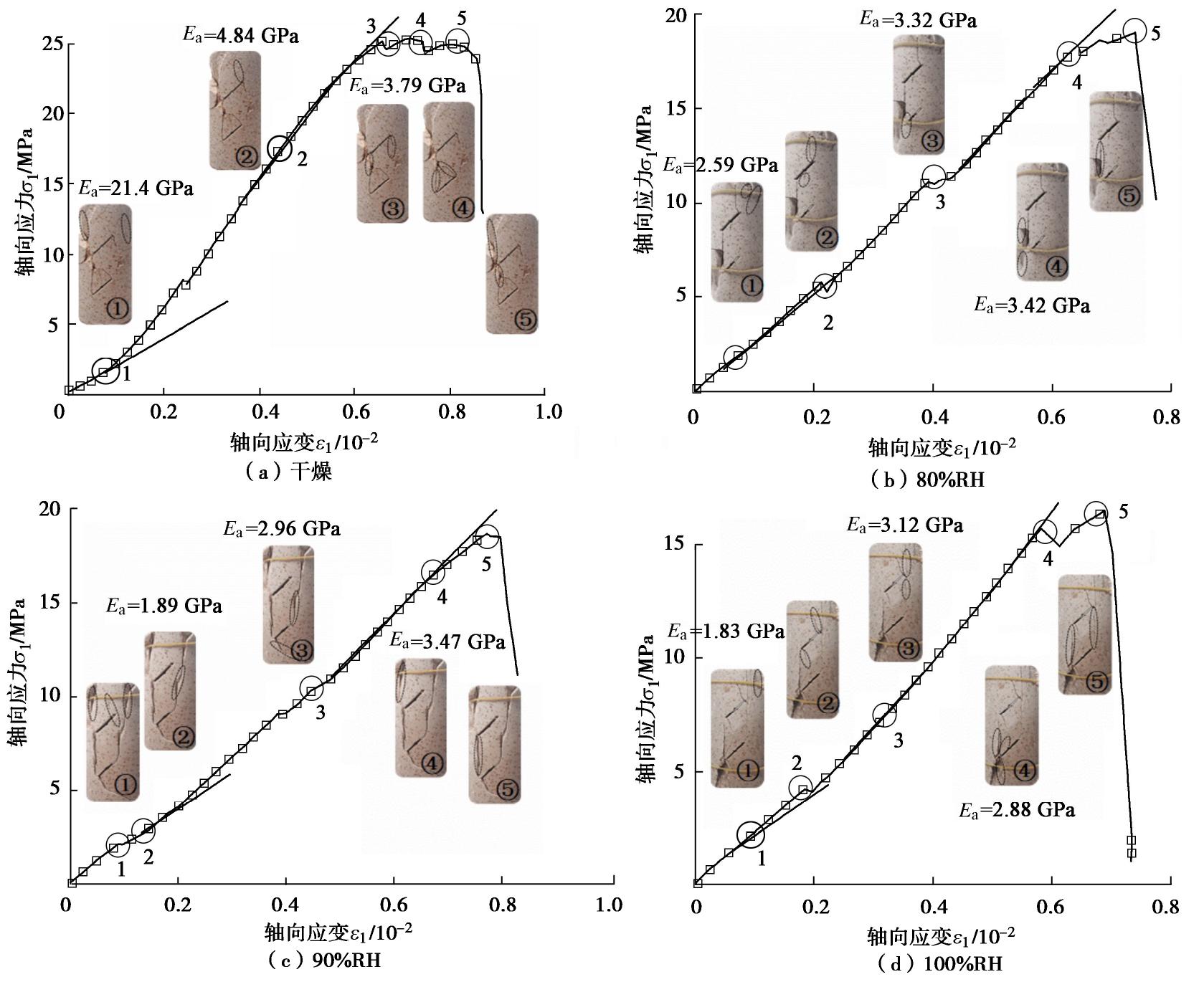 高湿环境平行双裂隙砂岩单轴压缩破坏及裂纹扩展特性