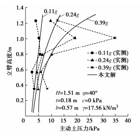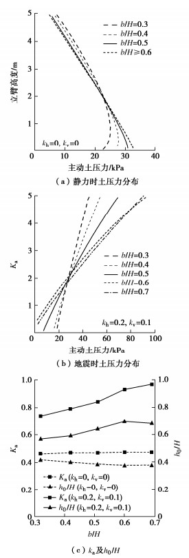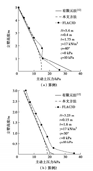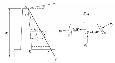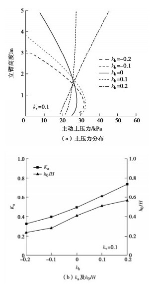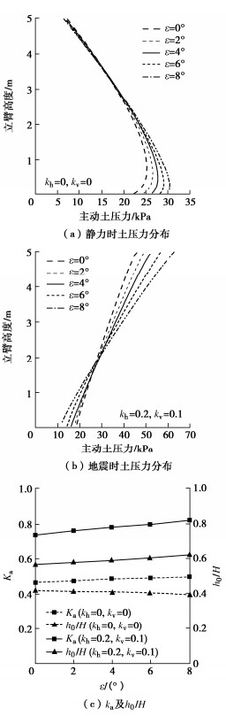 In order to determine the seismic active earth pressures on the stem of a cantilever wall, the resultant of the earth pressures on the assumed plane wall back is firstly derived using the upper-bound limit analysis and the pseudo-static method for five types of potential failure modes based on the log-spiral slip surface. The oblique and horizontal slice methods are secondly adopted respectively for the slide wedge mass and the local soils between the stem and the plane wall back to determine the earth pressure distribution on the stem, in which the earth pressure on the plane wall back are calibrated by the upper bound solution for the resultant of earth pressures. Some examples show that the proposed distribution of the earth pressures on the stem with depth takes on a parabolic profile with the peak point on the lower segment of the stem under the static condition, whereas it presents a nonlinear decreasing mode fairly identical with the test results under the seismic condition. The application point of the resultant is located on the lower and upper segments of the stem under the static and seismic conditions, respectively. The parameter study shows that the increase of horizontal seismic coefficient, heel plate width and stem back inclination induces a significant increase of the seismic active earth pressures on the middle and upper segments of the stem. Under the seismic condition, broadening the width of heel plate can cause the increase of the stresses on the stem. In particular, the proposed earth pressures on the stem are 9%~14% higher than those by China's code for design of retaining structures of railway earth works under strong earthquakes, and the proposed bending moments at the stem bottom are noticeably greater than those by the above code, which naturally means the Norm is not safely suitable for the aseismic design under strong earthquakes.