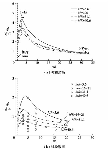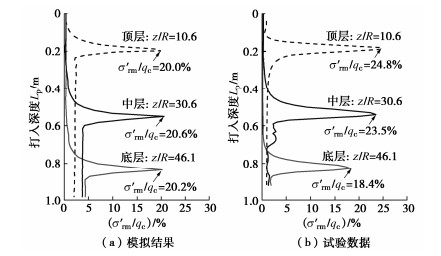 R effects of the stress in the surrounding soil are validated, along with the stress distribution varying with the relative distance with respective to the pile tip and pile centerline. The numerical simulation results are in good agreement with the experimental ones, indicating the robustness of the numerical model. The stress distribution obtained from the numerical analysis fills the blank of the stress data near pile shaft in experiments and is considered to be useful for improving the design methods for driven piles.