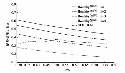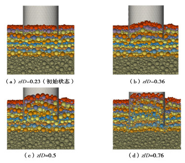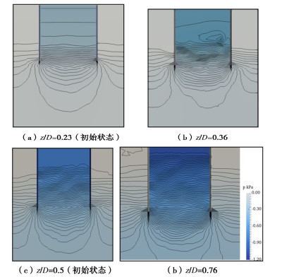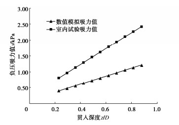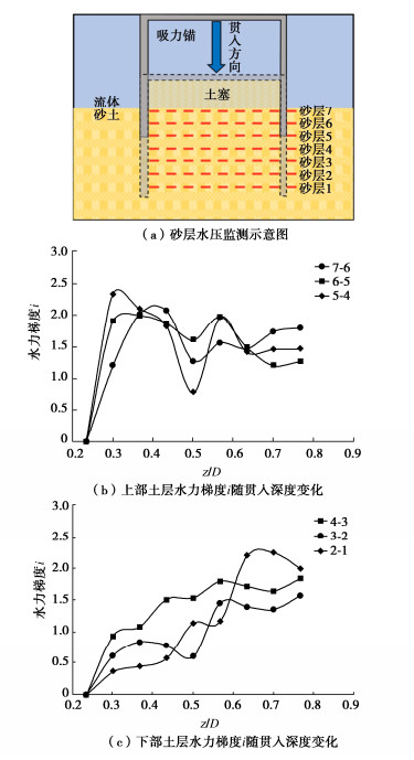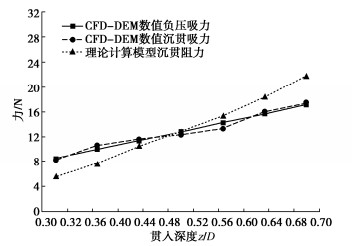 As a new-type and efficient marine structure foundation form, the suction anchor is widely used in ocean engineering. However, the traditional laboratory tests and the finite element numerical simulations have limitations in studying the penetration of suction anchors in granular materials such as sand. The fluid-solid coupling method based on the discrete element method and computational fluid dynamics theory (CFD-DEM) is used to numerically simulate the penetration of the suction anchors in sand. The effectiveness and accuracy of the CFD-DEM fluid-solid coupling method are verified by comparing with these of the laboratory suction penetration tests and the theoretical analysis of penetration resistance. The penetration mechanism of the suction anchors in sand is explained from the mesoscopic scale of soil particles. The changes of soil plug and sand layer inside the anchor during the penetration process are obtained, which shows that the sand layer presents a convex arc distribution in the middle, indicating the compaction effects. The soil displacement and expansion caused by the compaction effects are also part of the reasons for the soil heave. Simultaneously, the equipotential distribution of the excess pore water pressure changes and the changes in the hydraulic gradient of the sand layer during the penetration process are simulated, which confirms the "safety mechanism" of suction penetration in the sand. Finally, the change of negative pressure loss ratio is compared with the results of Houlsby and Byrne's theoretical model, and the variation law of permeability coefficient of soil inside the anchor with penetration is obtained. In this study, it is proved that the CFD-DEM is an efficient method to analyze the suction installation of the suction anchors in sand.