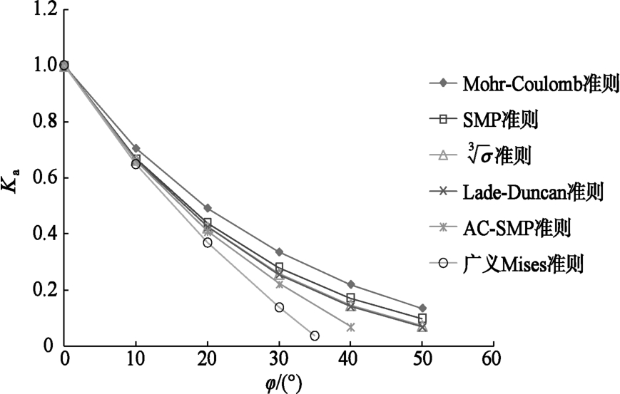spatially mobilized plane, Lade-Duncan and the AC-SMP strength are close to the measured data, among which the results by the AC-SMP strength criterion is much closer.The earth pressure calculated by the generalized Mises criterion is no longer appropriate to describe that on the retaining wall.When design the retaining structures under the plane strain state, appropriate formula should be chosen to consider the contribution of the intermediate principal stress so as to give full play of the potential strength of soil and to improve the economic benefits in project construction.