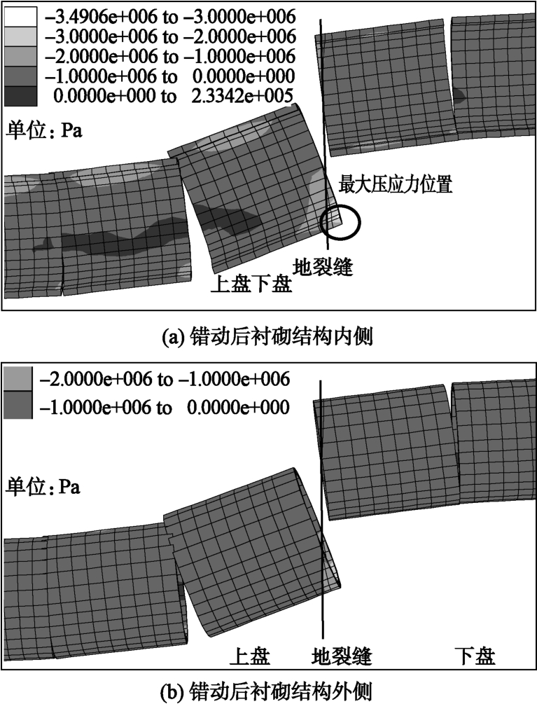 Abstract: Under the influences of tectonic movement and groundwater change, the fissures in Xi'an area are widely distributed at the concave junction of loess beam.The monitoring results of ground fissure movement show that the ground fissure movement has experienced the stage of development, violent activity, slow deformation and stability.On the basis of determining the relative settlement displacement of the upper and lower discs of the fissure movement, the structural measures of the tunnel with ground fissures adopting the expansion section and setting the deformation joints are put forward.With the development of the relative settlement deformation of the upper and lower plates of ground fissures, the lining structure of joints produces vertical staggered displacement and rotational motion characteristics.In order to adapt to the displacement of ground fissures and to meet the requirements of subway operation space, the concentrated distribution area of tensile stress and the movement of lining structure of joints are produced in the inner arch waist of tunnel.The engineering measures of asphalt concrete sealing deformation joints to prevent groundwater leakage are put forward.