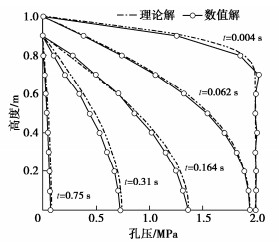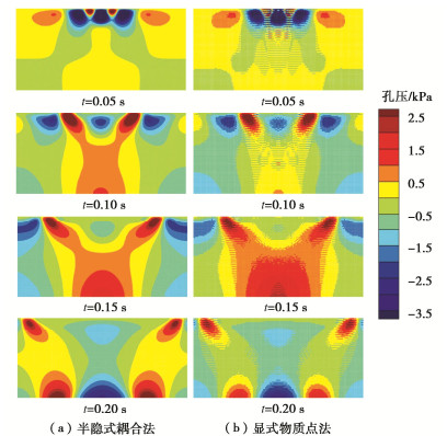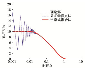 • 摘要: 物质点法是当下用于分析饱和孔隙介质大变形问题的常用手段。然而,传统的显式物质点法直接采用弱可压缩的泊松方程计算孔隙水压力,存在着孔隙水压力震荡以及压力边界难以施加等问题。鉴于此,提出了一个适用于饱和孔隙介质的耦合物质点-特征有限元方法。该算法将孔隙水视为不可压缩流体,基于特征线分裂算法的思想,将存在对流项的液相动量方程采用特征线法进行时间离散,并利用投影法分步计算固、液相中的压力和速度。应用此算法对一维饱和土柱的固结以及二维弹性地基中波的传播问题进行了数值模拟,所得结果与参考解基本相一致。计算结果表明新算法可以很好地克服显式物质点法在计算固结问题时产生的孔隙水压力震荡现象。
