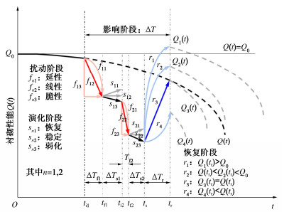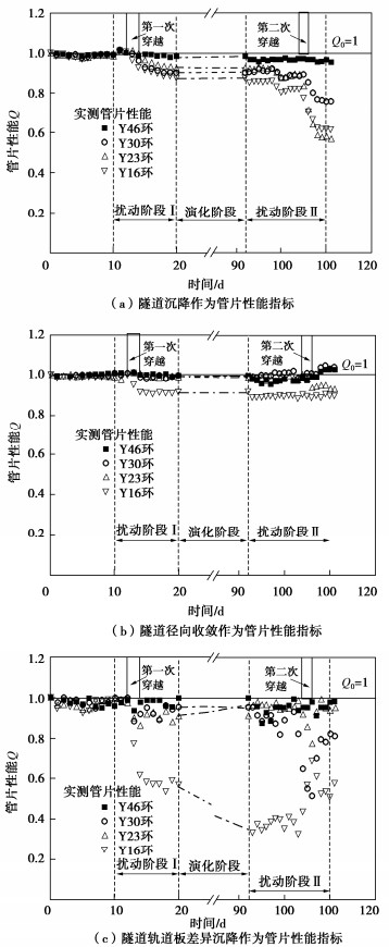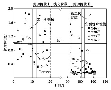 It is essential that the shield tunnel lining is evaluated scientifically and reasonably for ensuring the safe operation of the train. In view of the fact that the current evaluation methods cannot quantitatively evaluate the tunnel lining well, an evaluation method is proposed for the resilience of shield tunnel linings considering multiple disturbances based on the resilience theory. First, the method for the resilience indices of the tunnel linings is obtained by establishing a multi-stage resilience analysis model. Secondly, according to different responses of the tunnel linings under the loading and unloading conditions, the performance indices of tunnel linings for the corresponding conditions are proposed. On this basis, the classification standard for the resilience of the tunnel linings is defined. Then, the effects of the performance recovery degree of the linings and reinforcement decision-making time on the tunnel resilience are discussed. Finally, the proposed method is applied to the case of the new parallel tunnels under-crossing existing tunnels. The results show that the resilience indices obtained by using different lining performance indices are obviously different. For the tunnel projects under-crossing existing tunnels, only taking the convergence deformation as the performance indices of the tunnel structure will cause the calculated results to be high, that is, the lining resilience is overestimated. From the case, it is seen that more attention should be paid to the tunnel settlement and the differential settlement of the track slab should be paid more attention to, especially the differential settlement of the track slab. The research results may provide important references for the safety assessment of shield tunnels.