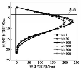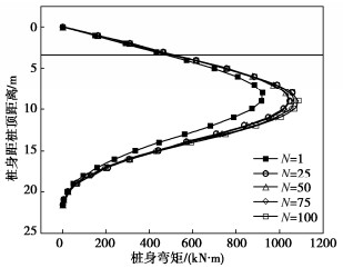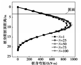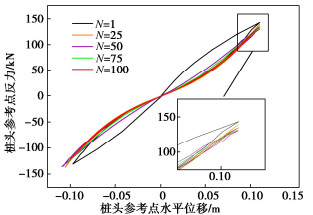 The single pile foundation in marine environment is subjected to long-term cyclic loading due to wind, waves and currents. Under the cyclic loading, the interface shear stress between pile and soft soil and the shear strength of soft soil around the pile will decrease, thus affecting the bearing characteristics of pile foundation. The cyclic interface friction coefficient between Q235 steel and Tianjin coastal soft clay is obtained through the interface shear tests, and the cyclic softening parameters of Tianjin coastal soft clay are obtained through the dynamic triaxial tests, which provides a method to obtain the parameters for quantifying the cyclic friction characteristics of pile-soil interface and the cyclic softening characteristics of soft soil around piles. On this basis, a finite element model for single pile foundation in undrained soft foundation under horizontal cyclic loading is established with the combination of the constitutive model for soft soil, which can consider the strain softening effect of soft soil. The development laws of pile head displacement and reaction response and pile section bending moment under horizontal cyclic loading are studied while the development law of softening area of soil around the pile under cyclic loading is obtained. The calculated results show that the softening area of soil around the pile foundation develops continuously with the increase of cyclic number. Meanwhile, the softening zone of soil has a high degree of development along the depth under the action of high horizontal cyclic displacement. The position corresponding to the maximum bending moment of pile body moves downward.