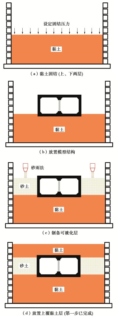 To study the earthquake damage response of a subway station structure in a liquefied interlayer site, a series of dynamic centrifuge tests are carried out using the ZJU400 geotechnical centrifuge facility in Zhejiang University. The test scheme and the process of carrying out the tests are introduced. At the same time, in view of the current situation that there is no precedent for a reference for the preparation of the liquefied interlayer site, many technical details are elaborated, including the preparation of liquefied interlayer site (clay consolidation, sand saturation and assembly of interlayer site), structural waterproof treatment, and releasing initial pore pressure in the sand layer during centrifugal loading. The tests obtain ideal results, thus achieving the experimental goal of studying the earthquake damage response of the subway station structure in the liquefied interlayer site. The introduction to the design process of this test scheme may provide some references for the similar tests in the future.