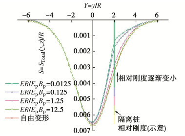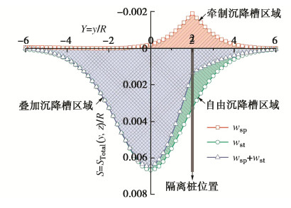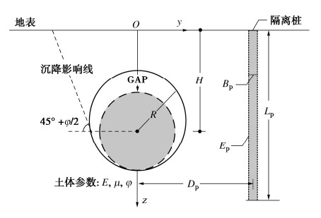 As an efficient protective measure, the isolation piles are widely used in the control of tunneling-induced environmental effects in urban areas. Based on the two-stage concept, a vertical pile-soil interaction model that can consider the relative slip between the isolation pile and the soil (simulated by the pile shaft spring and the pile tip spring) is established. Based on this model and introducing the displacement compatibility condition, using the modified Loganathan-Poulos (L&P) formula and the Melan solution of the vertical displacement in a general form, the interaction forces between the isolation pile and the soil (i.e., the internal force of the springs) are solved. Using the superposition principle, the ground vertical displacements caused by tunnel excavation under the restraint of isolation piles are further solved. The results are verified by comparing with those of the existing analytical methods and field measured data. Based on the analytical results of the proposed model, the mechanical mechanism of the effects of the isolation piles on the ground vertical displacements is investigated. The studies have shown that the restraint effect of the isolation piles on soil can be divided into two parts, upward part and downward part. The combination of the upward and downward effects together drives the tunneling-induced ground vertical displacements along the depth direction to change from non-uniform state to a relatively uniform one. The spring stiffness of the pile shaft and pile tip determines the degreeof interaction between the pile and the soil. The smaller the stiffness, the smaller the interaction force, the greater the relative displacement between the pile and the soil, and the smaller the upward and downward restraint effects. The related research may provide theoretical guidance for the design and effect evaluation of isolation piles.