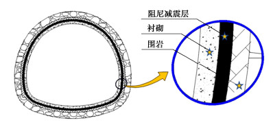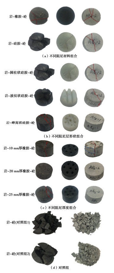 The flexible damping technology has been extensively acknowledged as an application for seismic damage reduction in underground engineering projects. To further develop and implement this technology, a viscoelastic damping layer structure is proposed based on the understanding of viscoelastic damping theory in the field of seismic resistance of bridge construction. An improved spilt hopkinson pressure bar (SHPB) test system is used to perform the impact tests on different rock-damping layer-concrete specimens. The energy absorption laws using different damping layer materials (rubber and silicone) and different damping layer structures (honeycomb, corrugated and cylindrical) are comparatively studied. At the same time, with the same layer material and structure of the damping layer, the energy absorption laws of the structures with different thicknesses of damping layer are compared and analyzed, and the optimal thickness is investigated. The results show that the incident energy absorbed by the damping layer structures of different damping layers has increased by more than 10%, compared to the control group (rock-concrete specimen). It is indicated that the structure has superior energy absorption characteristics and the rubber can absorb more incident energy as the damping layer than the high-damping silicone. Among various damping layer shapes, the composite damping layer structure with a honeycomb damping layer has better energy absorption characteristics than the others. In addition, after comparing and analyzing the energy absorption effects of the structures with different thicknesses of the damping layer, it is found that the optimal thickness of the damping layer with the best energy absorption effect is 20 mm. The overall results can serve as a theoretical and data support for the application of composite damping layer structures in seismic design of underground engineering projects.