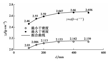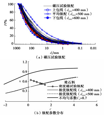 Based on the design filling gradation of rockfill materials for Lawa super-high face dam, the main factors affecting the test accuracy of large density barrel are studied by means of numerical and field tests. The double-control index of rockfill porosity and relative density is proposed, and its applicability is verified by the results of rolling tests. The results show that: (1) For the field density barrel tests on the coarse-grained soil with a large particle size, which is difficult to be fully mixed, the method of artificial layering can effectively reduce the discreteness of the test results. (2) The selection of container size has a great influence on the test results, and too large size will bring higher test cost, even difficult to implement, while too small size will bring obvious container boundary size effect. Considering the actual situation in the field, the size effect of the test results is relatively small when the density barrel test size meets the minimum 'diameter to diameter ratio' and the 'height to diameter ratio' is about 4.0 and 2.0, respectively. (3) With the increase of the maximum particle size, the extreme dry density of density barrel tests shows an increasing trend. However, when the maximum particle size reaches 400 mm, the extreme dry density is basically stable. The test results can be used as the basis for compaction design and filling quality control. (4) The porosity is not higher than 19% and the relative density is not less than 0.75. The requirements can be met by using 32T vibration rolling 12 times. (5) For the soil with a large particle size with horizontal layered compaction, the ratio of the thickness of compaction layer to the maximum particle size can be appropriately increased, which can achieve better compaction efficiency. It is an optimal compaction scheme for rockfill materials to take a loose paving layer with a thickness of about 1.0 m and a maximum particle size of 400~600 mm. The research results can be directly applied to the compaction design and evaluation of coarse-grained soil with large particle size, which has a great application value.