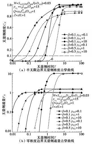 β=0.1), the breakthrough time can be reduced by 68%. The bottom concentrations and fluxes can be reduced by 40% when the diffusion and degradation dominate transport of contaminants (e.g.,