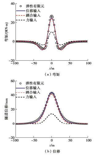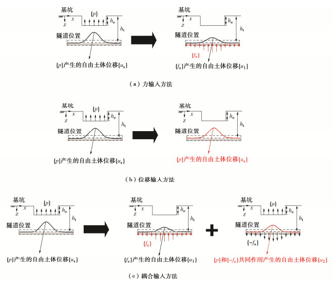 For most of the analysis methods for the longitudinal response of underlying tunnels, excavation of the foundation pits is treated as a simple unloading of the base and the additional stress of the greenfield soil at the tunnel axis is taken as the input condition. However, this force input condition is not the real load to which the tunnel is subjected, resulting in an unreasonable tunnel response. To this end, the reasons why the current force input condition is insufficient and the displacement input condition is more reasonable are firstly analyzed theoretically, and the Winkler subgrade moduli of the two input conditions are distinguished. It is proposed that the passive and active Winkler subgrade moduli should be used for the displacement and pressure input conditions, respectively. Secondly, by comparing the tunnel response obtained by the finite element model and the Winkler methods, it is verified that the displacement input condition is reasonable, while the current force input condition would underestimate the tunnel response. Finally, given the engineering practicality of the force-based method, it is proposed to adjust the magnitude of the force input condition by using the load amplification factor to obtain a reasonable tunnel response. Using a large number of finite element calculations for parametric studies, a simplified formulation for the load amplification factor is proposed. The feasibility of the proposed method is verified by comparing with the field measurements of a case study.