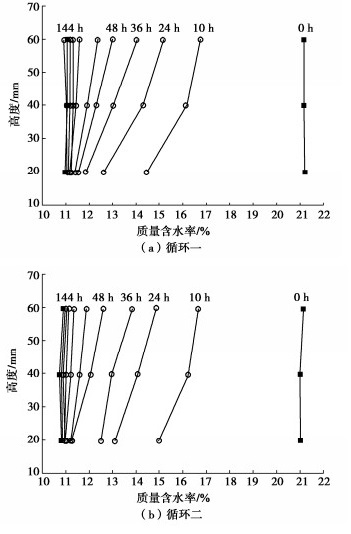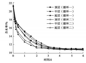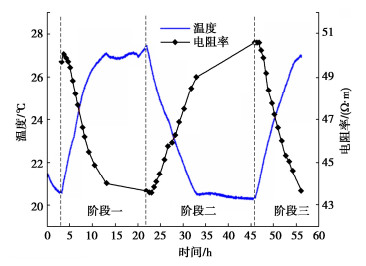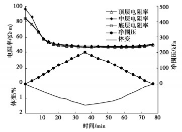 The real-time measurement of moisture content distribution in the triaxial tests is significant to suction balance, shear rate and wetting deformation. The principle of water content tests on triaxial samples is proposed by extending van der Pauw (vdP) resistivity theory. Moreover, the flexible printing electrode (FPE) with 0.1 mm in thickness and the vdP method device are developed. The compatibility and reliability of the device are verified through the sensitivity factor tests such as net confining pressure and temperature. Finally, the triaxial drying-wetting cycle tests under constant pressure are carried out. At the same time, the layered resistivity is monitored. The test results show that the test device needs the preloading of net confining pressure of at least 120 kPa to ensure the complete cover between the FPE and the samples, and the net confining pressure shall be more than 20 kPa to ensure the cover status in the tests. The temperature has a certain influence on the results of resistivity tests, and the Campbell model can effectively correct the temperature-introduced errors. In the process of moisture wetting, the resistivity decreasing from bottom to top can be observed dramatically. In the process of drying, the resistivity decreases gradually from top to bottom. Finally, the method for calculating the layered moisture content during drying process is proposed, and the evolution law of moisture content distribution is analyzed.