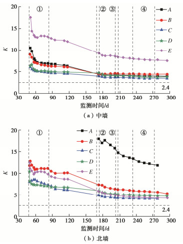 不等跨四连拱隧道中隔墙结构受力现场测试与分析