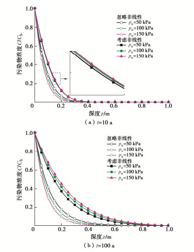 pu reduces the transport rate of contaminants. However, when the nonlinear compressibility and permeability characteristics are considered, the increase of