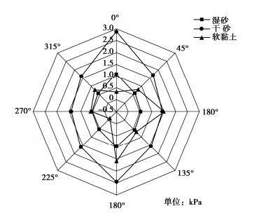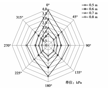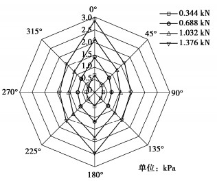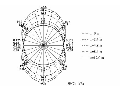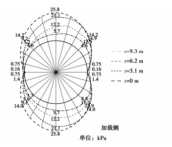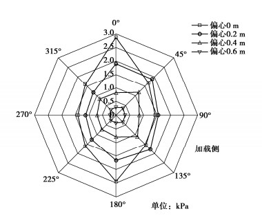 D0, the decrease of the confining pressure of the tunnel at the eccentric side is obviously much smaller than that at the non-eccentric side. However, when the surcharge position is 1.5