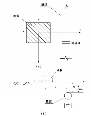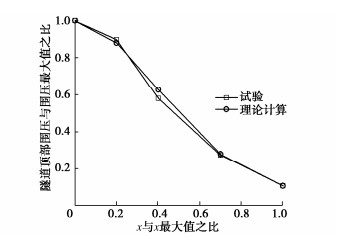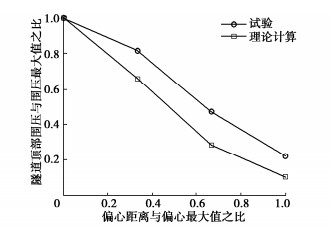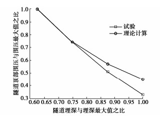 D0 is the outer diameter of the tunnel segment). As the buried depth increases, due to the increase in the thickness of the soil at tunnel crown, the influences of the surface surcharge on the confining pressure of the tunnel are relatively reduced. The theoretical results are in good agreement with those of the indoor model tests, and thus the accuracy of the experimental and theoretical analyses is demonstrated.