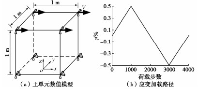 3D platform, the secondary development of the constitutive model is realized. The calculation accuracy of the program is validated by comparing with the theoretical solution of the model. The feasibility and the rationality of the proposed nonlinear dynamic constitutive model to deal with such problems are verified by comparing with the soil element cyclic torsional shear tests. It provides an effective means for the study on marine geotechnical engineering using the FLAC
