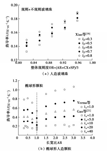Am. At a given porosity, round particles possess higher thermal conductivity, and the higher porosity leads to the less significant discrepancy in the thermal conductivity of different dry sands. The proposed model is excellent in applicability and advanced as compared to the Côté and Konrad model. The effects of particle shape on the thermal conductivity for dry and non-cohesive soils are comprehensively affected by multiple factors, which are dependent on the factors including stress condition and particle stiffness.