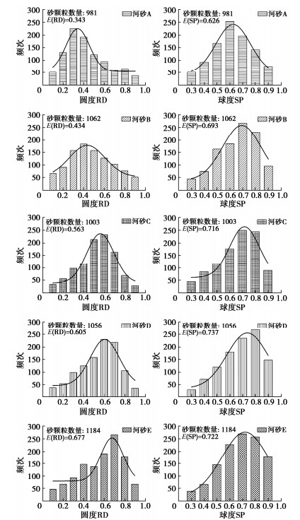 The aim of this study is to reveal the influences of particle shape of dry sands on their thermal conductivity. A series of particle shape determination and thermal probe experiments are conducted to investigate the statistical distribution characteristics of two-dimensional particle morphology for various natural river sands and the relationship between particle shape parameters and thermal conductivity. The internal mechanisms of contact thermal conduction among sand particles are also discussed in mesoscale. The results indicate that both the roundness and the sphericity of natural sand exhibit normal distribution features in statistics, and their expected values are the proper parameters for quantitatively characterizing the particle morphology. The thermal conductivity displays a linearly decreasing trend with an increasing porosity in the semi-logarithmic coordinates, with the slope of the line linearly decreasing with the increase of the average shape factor