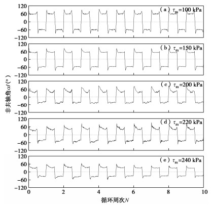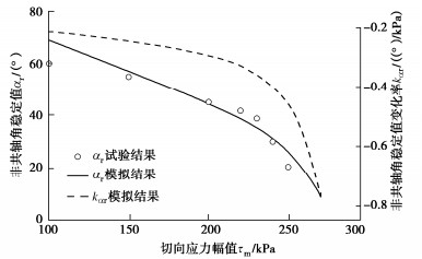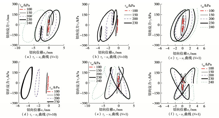 y directions, enlarged migration of the tangential displacements towards the negative directions, increased peak shear flexibility and decreased stabilized non-coaxial angle. The stabilized non-coaxial angle and the initial peak shear flexibility have a close relationship with the shear stress amplitude, and can be described using the proposed formulas, which may provide a sound basis for the 3D constitutive modeling of the soil-structure interface.