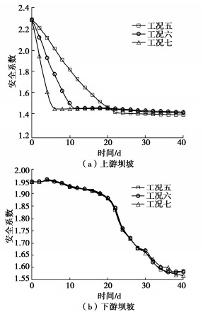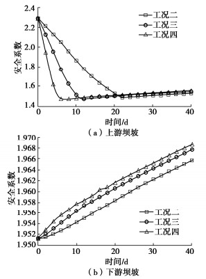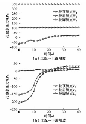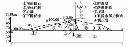 The climate change has brought unprecedented challenges to the safe operation and management of reservoir dams. The antecedent rainfall and change of reservoir water level are the key factors affecting the instability of reservoir dam slopes, and the impact of rainfall on the stability of dam slopes or shallow dam slopes is not considered in the existing design code for rolled earth-rock fill dams. The landslide or dam break of reservoir dams seriously threatens human lives and causes huge economic losses. Taking the core wall dam of a reservoir as the research object, a finite element model is established, the influences of the antecedent rainfall and change of reservoir water level on the seepage and stability characteristics of the core wall dam are investigated, the variation rules of pore water pressure, hydraulic gradient and safety factor of anti-sliding stability of the dam slope are released, and the accuracy of the model is verified by using the high-density electrical method and the safety monitoring data. The research results show that the antecedent rainfall has a great impact on the pore water pressure and safety factor of anti-sliding stability in the shallow depth of the dam slope. The influence degree of the antecedent rainfall on the pore water pressure of the downstream dam slope has the descending order: slope top, slope shoulder and slope toe. With the increase of the antecedent rainfall, the pore water pressure within 10 m of the downstream dam slope gradually increases, and the surface soil of the downstream dam slope reaches the saturated state. After the main rainfall, the safety factor of anti-sliding stability of the downstream dam slope greatly decreases. The phreatic line elevation of the proposed model is consistent with the measured water level using the high-density electrical method and the piezometric tube, which verifies its accuracy. The reservoir water level is the main factor affecting the pore water pressure and safety factor of anti-sliding stability of the upstream slope. The influence degree on the pore water pressure of the upstream slope of the dam is in the descending order of slope toe, slope shoulder and slope top. The rainfall is the main factor inducing the change of pore water pressure and affecting the safety factor and anti-sliding stability of the downstream slope. The comprehensive model, high-density electrical method and safety monitoring data can be used to better analyze the change laws of pore water pressure, seepage gradient and safety factor of core wall dam. The analyses of the effects of the antecedent rainfall and change of reservoir water level provide a scientific basis for improving the design specifications of earth-rock dams and the safety evaluation of reservoir dams.