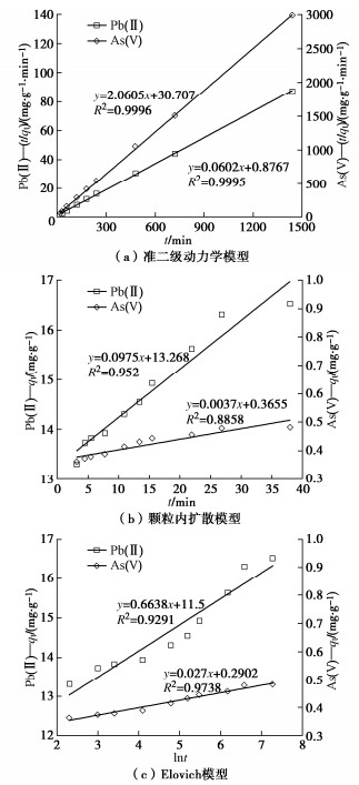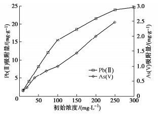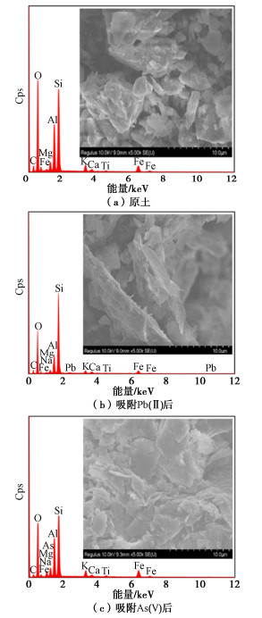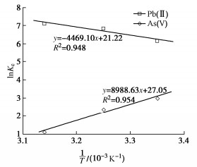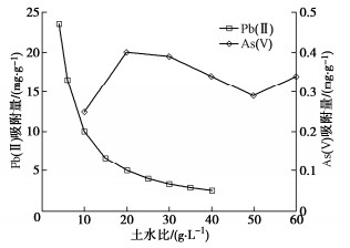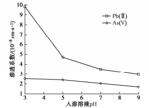 Adsorption of metal cations has been extensively studied. However, the researches on adsorption of anions are still lacking. Adsorption of As(V) on a silty clay is investigated and compared with that of a common cation, Pb(II). The effects of solid-solution ratio, reaction time, concentration, pH and temperature on the adsorption are studied. The adsorption kinetics, isotherms and thermodynamics model sand meso/micro tests are used to investigate the adsorption mechanism involved. The hydraulic conductivities of the contaminated soil are studied. The test results show that the adsorption capacity of As(V) is much lower than that of Pb(II). The adsorption of As(V) increases linearly with the increasing concentration. The adsorption of Pb(II) increases with pH, whereas that of As(V) decreases slightly under alkaline condition. The adsorptions of As(V) and Pb(II) can both be described by the pseudo-second-order kinetic model, and are both dominated by chemical adsorption. Both intraparticle and film diffusions are involved in the adsorption of Pb(II), whereas the intraparticle diffusion is the rate-limiting factor for the adsorption of As(V). The Langmuir model gives poor fit for the adsorption of As(V), which can be rated as moderately difficult. The adsorption of Pb(II) is endothermic and favored by high temperature, whereas that of As(V) is exothermic and decreases with temperature. The meso/micro analysis shows that the adsorptions of As(V) and Pb(II) happen mainly out of the crystal structure. The soil pores become larger after the adsorption of Pb(II) due to particle aggregation, whereas the soil particles become more scattered after that of As(V). Some functional groups participate in the adsorption. As heavy metal content increases, the hydraulic conductivity of Pb(II)-contaminated soil increases whereas that of As(V) decreases. The alkaline condition increases the conductivity. The obtained adsorption mechanisms and parameters are important for the researches on arsenic pollution.