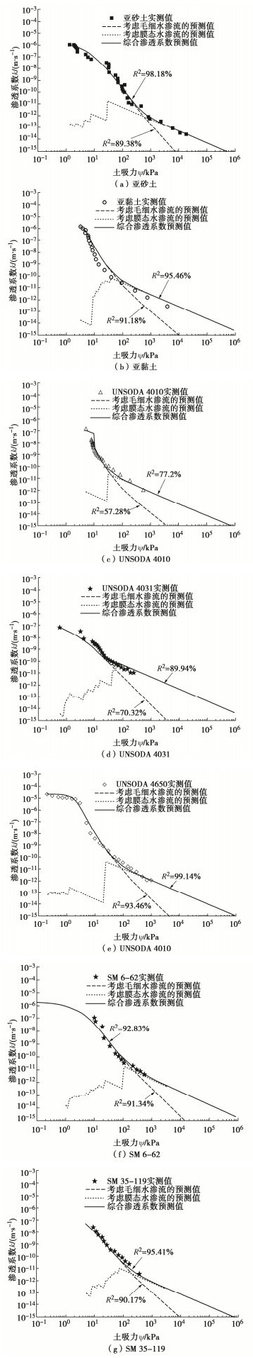 It has become a common practice that the hydraulic conductivity of unsaturated soils is estimated from the soil-water characteristic curve by using either empirical method or statistical method. The estimated results by the empirical method are dependent on the empirical parameters while those by the statistical method are determined based on the theory of statistics. As a result, the results by the statistical method are more reliable than those by the empirical method. It is observed that the hydroscopic water is misused as the capillary water in the conventional statistical method. Because of the adsorptive force, the water film (hydroscopic water) is attached around the soil particle, and it acts as the transferring medium for the water migration in soils. The flowing rate of the water in the adsorbed water film is a function of the thickness of the water film. Both the thickness of water film around a single soil particle and the flowing rate through the water film are firstly computed. Subsequently, the probability of the connecting between particles with different sizes is calculated by using the grain size distribution (GSD) data. Consequently, a new equation is proposed for the estimation of the hydraulic conductivity of unsaturated soils by considering the film flows in soils. The proposed method is verified using the experimental data from literatures. It is indicated that results by the newly proposed method provide better agreement with the experimental data as compared with those by the conventional statistical method.