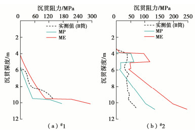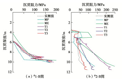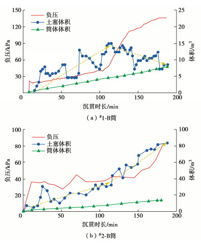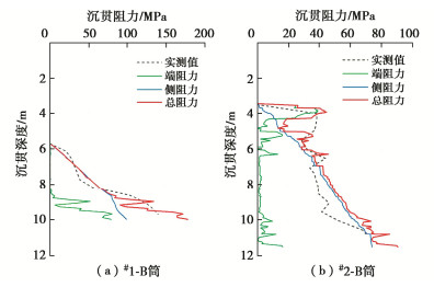 The penetration behavior of suction bucket foundations has a significant effect on engineering application. Based on the measured installation data of two suction bucket jacket foundations in an offshore wind farm, the CPT-based method used for calculating the penetration resistance in seabed and the two critical empirical factors, k_\textp(z) and k_\textf(z) , recommended by the DNV code are studied. The component of penetration resistance of suction bucket in clay soil layer and sand soil layer, respectively, and the soil plug during suction penetration process are analyzed. The results show that the penetration resistance of suction bucket can be precisely predicted by the CPT-based method. The empirical factor k_\textf(z) for silty soil, silty clay soil and the empirical factor k_\textp(z) for grit sand, medium-dense sand and coarse sand are overestimated by the DNV code. During suction penetration process, the soil plug of suction bucket foundations relies on the seabed soil layers and mechanical properties of soils.