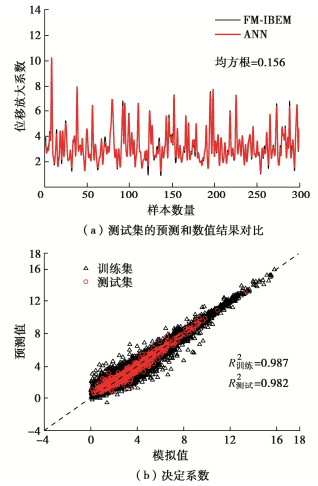 • 摘要: 沉积盆地对地震波的散射导致盆地放大效应,增大结构震害。盆地的岩土参数通常具有显著的随机特征,导致盆地响应的可变性。旨在基于快速多极边界元法(FM-IBEM)和人工神经网络(ANN),提出一种考虑岩土参数不确定性的三维沉积盆地地震动有效模拟方法。首先,以岩土参数、入射波频率和地表位置为输入参数,以三维沉积盆地响应为输出参数,建立了人工神经网络模型。其次,利用蒙特卡罗模拟(MCS)来评估沉积盆地地面运动的随机性,并使用ANN模型和数据集中现有的结果来代替数值模拟来求解样本,通过减少计算时间来提高随机问题的计算效率。结果表明,该方法可用于求解和评估考虑岩土参数随机性的三维沉积盆地地震响应,计算效率高。岩土参数的随机性对沉积盆地地震响应的影响不容忽视,沉积盆地地表响应的可变性与地表点的位置、入射频率和分布有关,表现出与均值分布非线性相关的特征。岩土参数的随机性对高频入射波作用下盆地地震动有显著影响,放大效应变异系数可达0.3,是岩土参数变异系数的3倍;与平均值相比,对应于95%置信水平的盆地峰值加速度增加了56%。