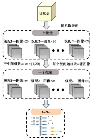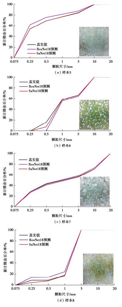 The coarse-grained soil is widely used in embankments, earth-rock dams and other fill projects. However, the traditional sieving method is time-consuming and inefficient, failing to meet the rapid quality testing requirements for gradation. To address these issues, an "image-gradation" relational database is established for yellow river silt and quartz sand coarse-grained soil, comprising 22380 photos. In response to the mismatch between two-dimensional image and three-dimensional gradation, a searcher-analyzer network (SaNet) is developed to handle any number of image inputs. The model accuracy steadily improves with an increase in the number of images, with average errors of 1.63% and 1.21% for the recognition of yellow river silt and quartz sand gradations, and the coefficient of determination of 0.995 and 0.992, respectively. The results demonstrate that the proposed deep learning model on the SaNet architecture exhibits high accuracy in gradation recognition, meeting the real-time non-destructive gradation detection requirements in fill projects.