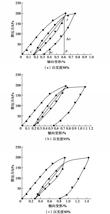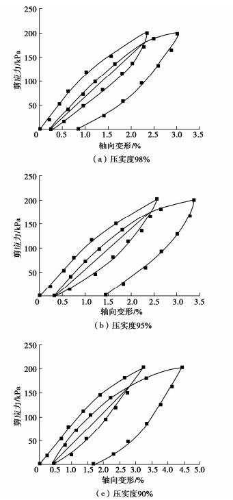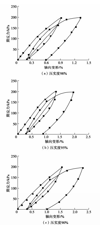 3, the water contents of 10.47%, 13.63%, 14.5% and 16.02%, and the confining pressures of 50, 100 and 200 kPa; (2) nine resilience modulus tests under cyclic loading and unloading conditions with the dry densities of 1.70, 1.80, 1.85 g/cm