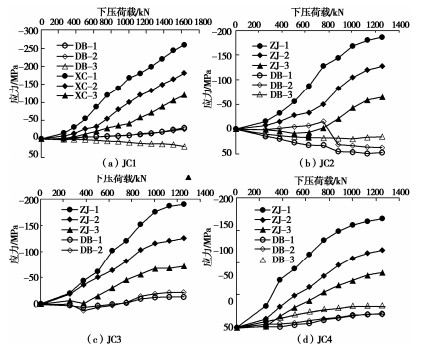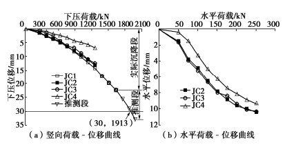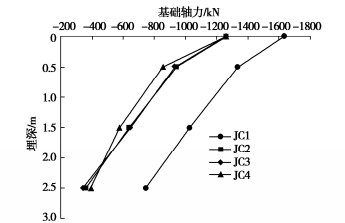 • 摘要: 输电线路金属装配式基础在环境恶劣的风积沙地区具有良好的应用前景。为探究金属装配式基础在风积沙地区的抗压性能,开展了4组原型试验,监测和分析了基础顶部竖向沉降与水平位移及其变化特征、基础构件应力与基底土压力及其变化规律,进而分析了基础的下压极限承载力。结果表明:组合荷载作用下基础整体处于压弯状态,下压极限承载力为1256 kN,基础侧摩阻力约占下压极限承载力的33.5%,而单一下压荷载作用下,荷载加至1632 kN时,地基仍未达到极限状态;水平荷载对基础支架上应力的发展和基底土压力的分布均有影响,导致基础下压极限承载力被削弱;地表冻土层的存在会对基础产生“约束冻胀”作用,强化基础抗变形性能;采用有效接触面积计算的基础单一下压极限承载力更接近实测值,利用R.Ganesh理论,提出通过下压极限承载力折减计算获得基础组合荷载极限承载力的方法。研究工作可为沙漠地区输电工程中金属装配式基础的工程设计与应用提供参考依据。